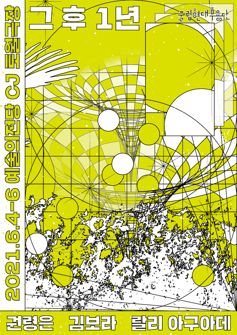 ‘그 후 1년’ 포스터 국립현대무용단의 ‘그 후 1년’은 2020년 국립현대무용단 〈브람스를 좋아하세요〉 공연이 취소되고 일 년 후에 재개한 의미를 담고 있다. 이러한 제목은 팬데믹이 어느 정도 공연의 판도를 변경시키고 다르게 만들었는지, 1년의 경계가 얼마나 확연하게 관객되는지를 관객 역시 공유하고 있음을 전제한다. 각기 다른 세 개의 공연은 이러한 환경에 맞추어 그 매체 자체가 변경되거나(〈승화〉) 또는 직접적인 팬데믹 환경을 알레고리로 하거나(〈점.〉) 그것과 결부 지어 예술의 조건을 의제화하는(〈작꾸 둥굴구 서뚜르게〉) 등 그 대응의 정도가 모두 다르다는 것을 확인할 수 있다. 이러한 예술의 대응들을 볼 수 있다는 차원에서 ‘그 후 1년’을 보는 하나의 시점을 구성할 수 있을 것이다.