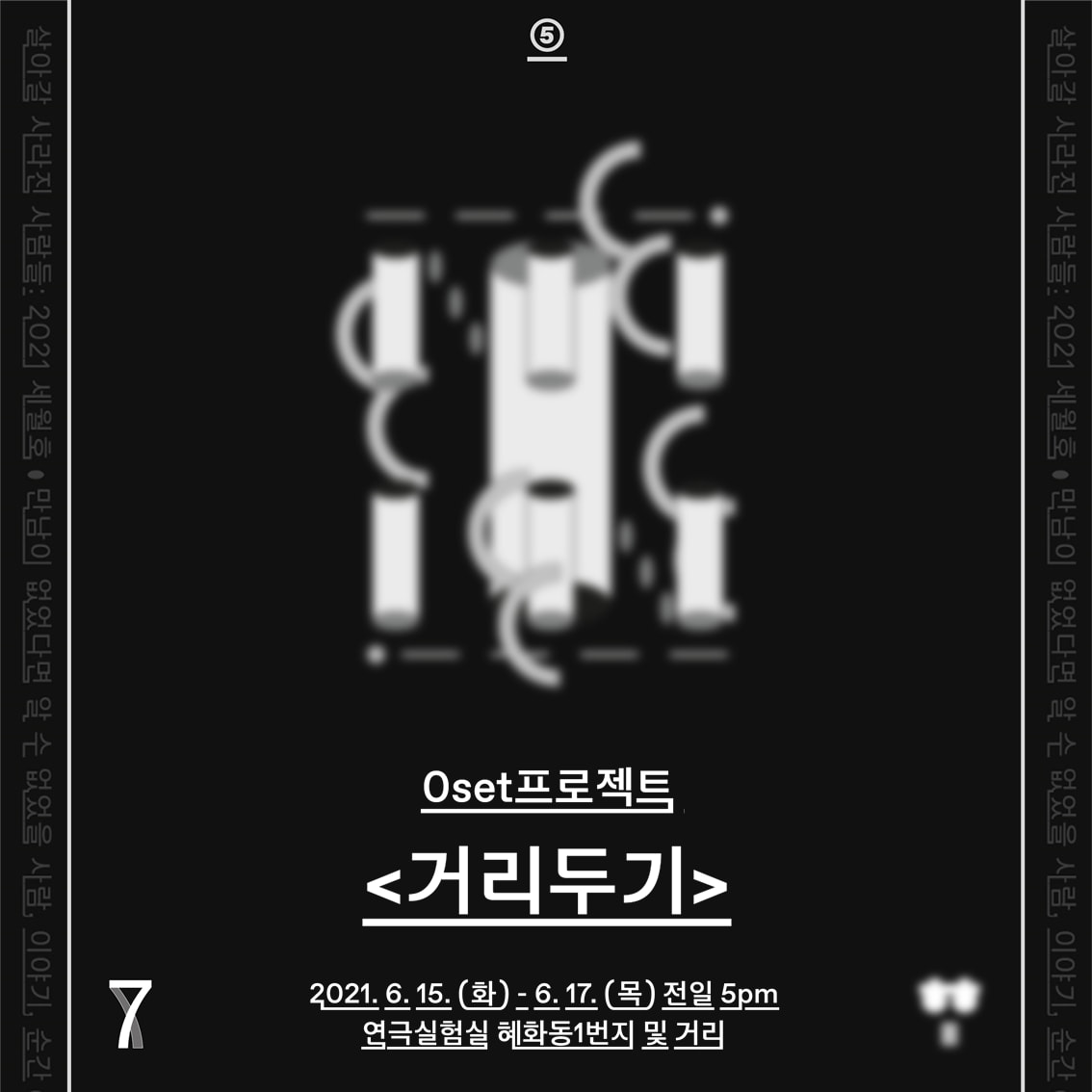 〈거리두기〉 포스터[출처=연극실험실 혜화동1번지 페이스북(이하 상동)] ‘살아갈, 사라진, 사람들: 2021 세월호’의 일환으로 열린 0set프로젝트의 〈거리두기〉는 4.16 세월호 참사로 희생된 단원고 학생 오준영 군의 가족(오민영_오준영 군의 동생, 오홍진_오준영 군의 아버지, 임영애_오준영 군의 어머니)의 이야기를 담은 영상, 그리고 실제 등장한 오준영 군의 어머니의 이야기, 그리고 그 가족이 남긴 메모를 읽는 것, 그리고 극장 주변을 한 바퀴 도는 투어의 역순으로 구성된다.