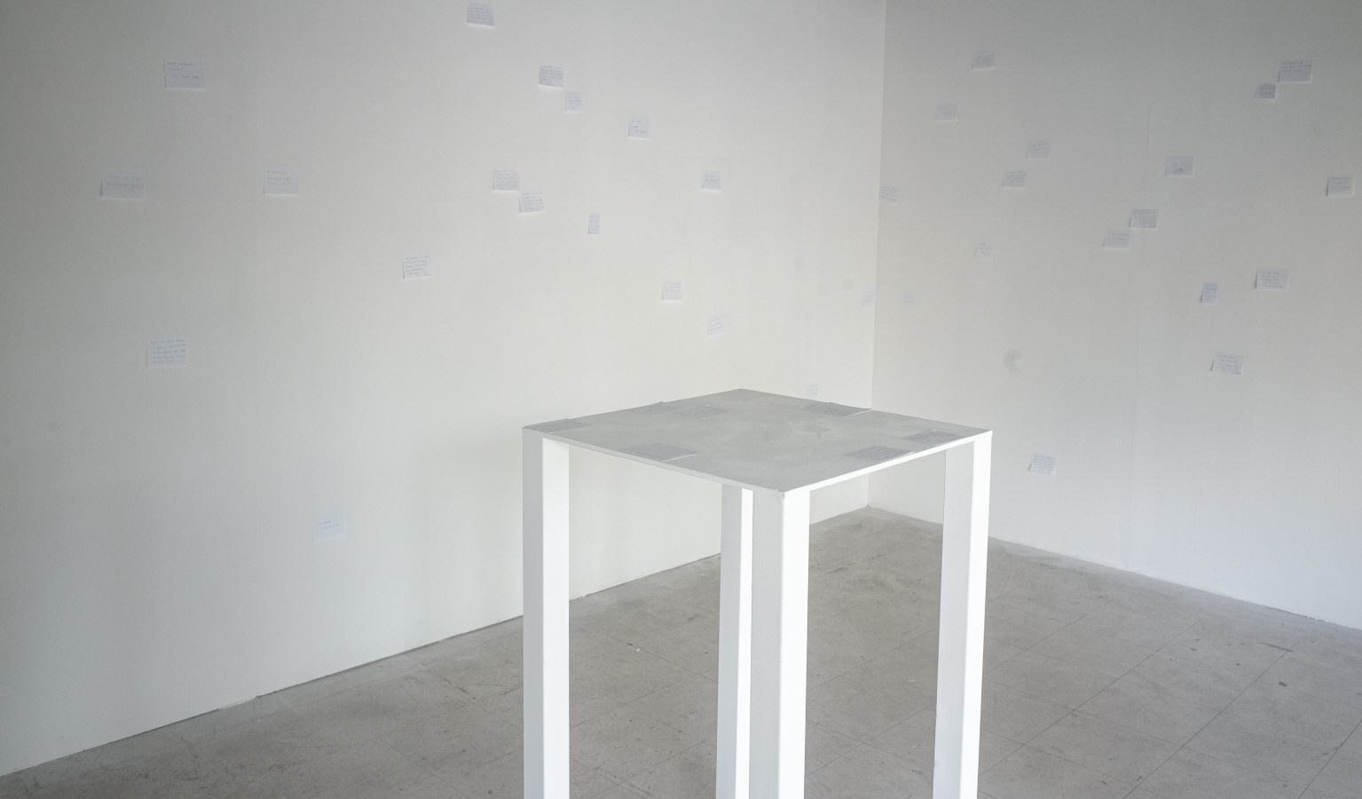 하얀 포스트잇은 크게 두 가지 서사가 전개된다. 하나는 작가의 현실을 주로 반영하는 말이라면, 다른 하나는 『바냐 아저씨』에서 나온 대사들의 인용이다. 먼저 레지던시를 전전하며 살아온 작가의 경험은 (전시품으로 지시되는 게 아닌) 어두운 콘크리트 벽 자체에 기입된 글자들로 투영돼 레지던시 스튜디오 내부를 체현한다. 이곳에는 거의 혼자의 경험이 강조된다. 모든 곳은 어둡고 모든 벽에 포스트잇이 있지는 않으므로 샅샅이 훑지 않는다면, 모든 포스트잇을 발견하는 데 실패할 수도 있다.