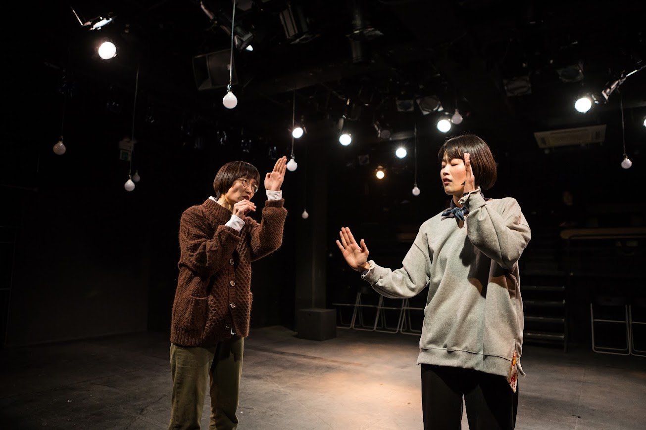 연극 〈김이박이 고등학교에 입학할 때 김이박이 고등학교에 입학한다〉ⓒ박태양[사진 출처: https://photos.app.goo.gl/8nB83eeZo4ygSLUS9](이하 상동). 사진 왼쪽부터 백소정, 최희진 배우.