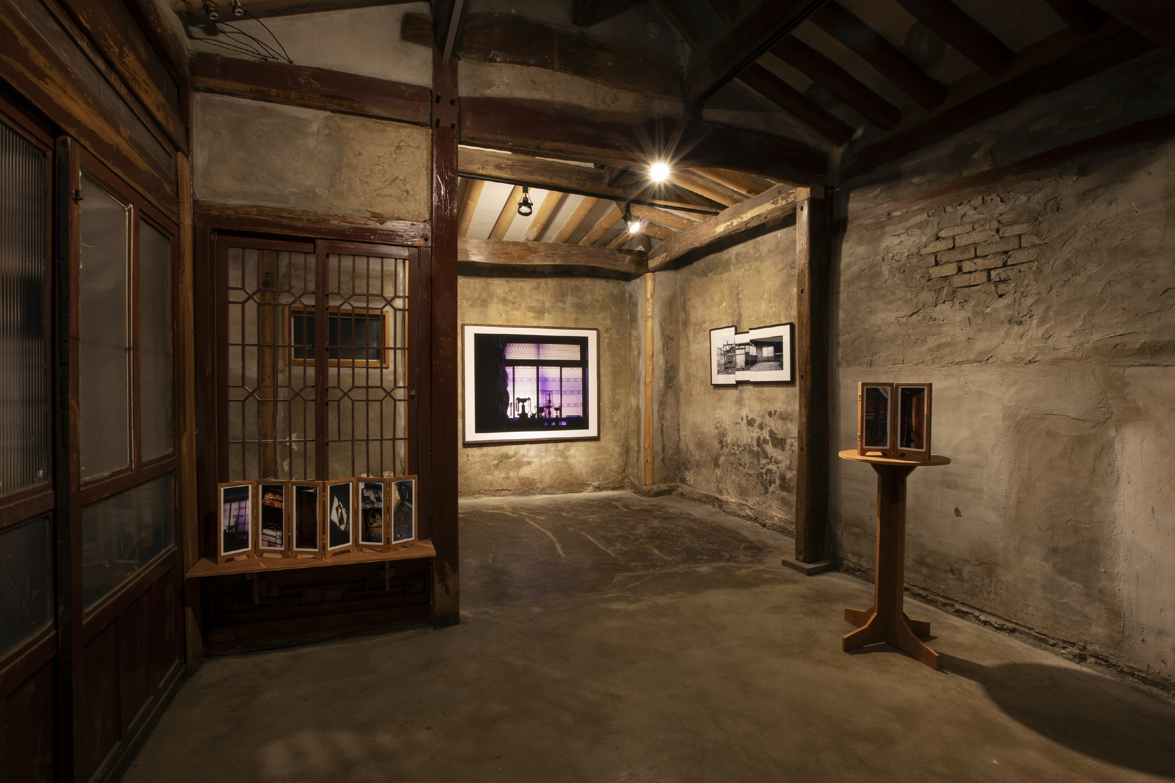 사진 작업을 하는 오석근 작가의 ‘인천’ 작업은 전시장 전체의 곳곳에 놓인다. 과거 인천 시장의 관사로 사용된 부윤관사의 2층 모습은 일본 건축에서 족자를 걸고 꽃이나 장식물을 놓는 일종의 집 안 전시 공간인 도코노마 위에 책장, 일종의 돌출 창인 우측 츠케쇼 앞의 트로피, 바닥에는 장판을 깔아 사용한 모습 등은 한국인의 삶이 투영된 결과다. 작은 병풍 형태로 만든 작업들은 적산가옥의 뼈대나 틈과 같은 표면을 밭게 찍은 결과로, 공간과 관람자의 거리를 협소하게 구성하고 조망의 시선을 거두는데, 이는 형태들 자체보다 시간이 켜켜이 쌓인 동시에 이지러진 시간의 무덤에서 중심을 잡는 것의 어려움을 현상하는 듯하다.