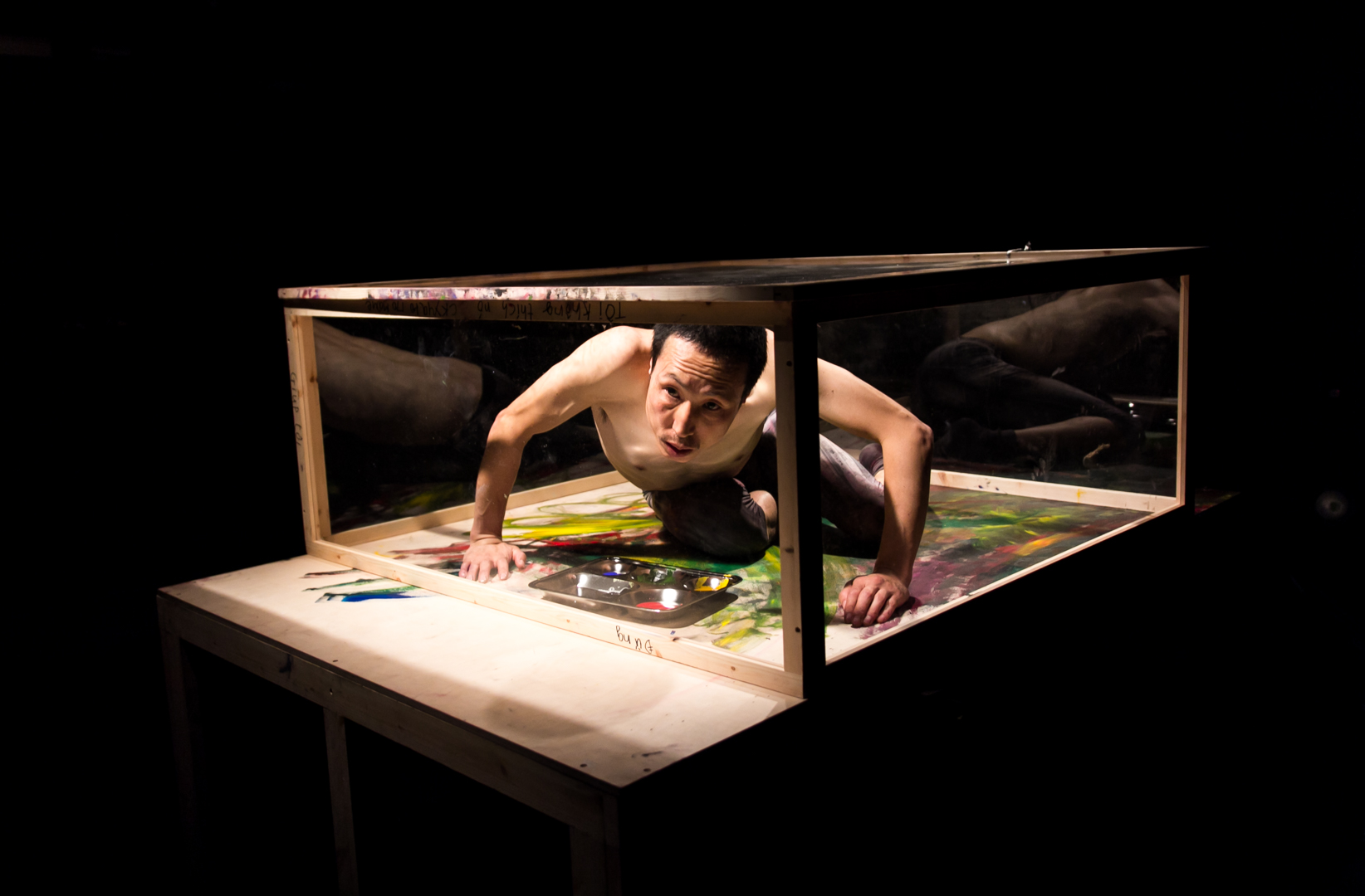 금배섭은 오토바이를 타고 와서 닭장 속의 닭에게 식판으로 식사를 주는 또 다른 역할로 분배되는 듯 보인다. 또는 이는 하나의 자아가 노동의 주체에서 죽음을 맞는 수동적 대상으로 변해가는 것을 의미할 수도 있다. 그리고 짧은 하의만 입고 네 다리를 들고 유리 상자 안에서 식판 위의 물감을 묻혀 천장을 칠하는 행위를 통해 협소한 공간에서 삶의 의지를 처절하게 노출하는 존재의 실존을 재현하기에 이른다. 결과적으로 언어가 없는 장면들의 전개는 최소한의 환경 정보를 가지고 최대한으로 확장해 현재를 바라보게 하는데, 따라서 정보 값은 추상적이지만 해석에 대한 강력한 의존도를 형성한다.