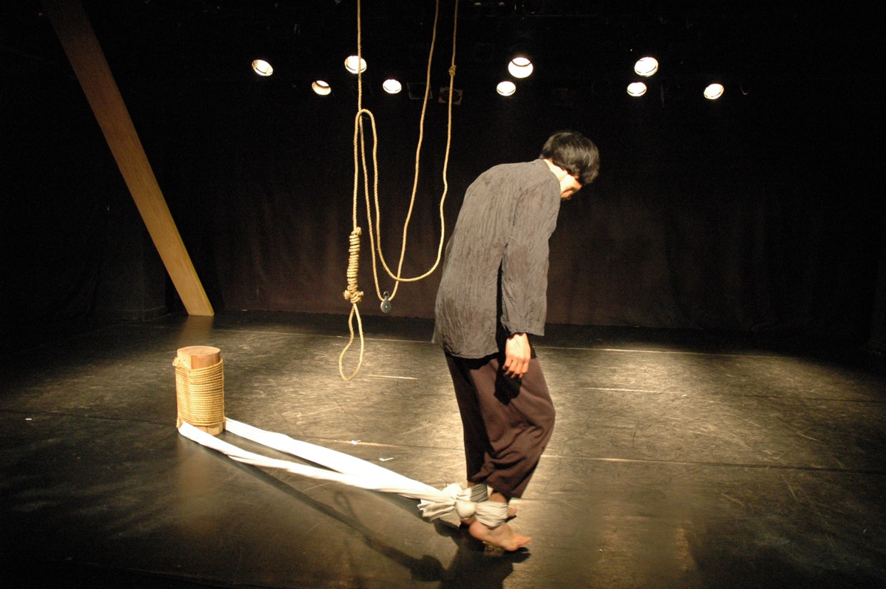 남자의 삶은 자기 결단적이고 또한 사물 환경에 내속적이다―이런 차원은 퍼포먼스의 자기 완결성, 자족적 성격을 굉장히 많이 공유하는 부분이다. 발에 낀 것처럼 장갑은 끝까지 몸의 연장이 되고, 몸의 지지대로 활용된다. 그리고 혼자만의 공전으로 이어진다. 곧 자가적인 세계의 완성과 그 세계로의 영원한 귀속의 절차를 보여주는 〈니가 사람이냐?〉는 풀리지 않은 팔의 긴장 관계를 여전히 유지한 채 갈고리에 빈 양동이를 그리고 자신의 팔을 건 채 암전으로 끝난다.