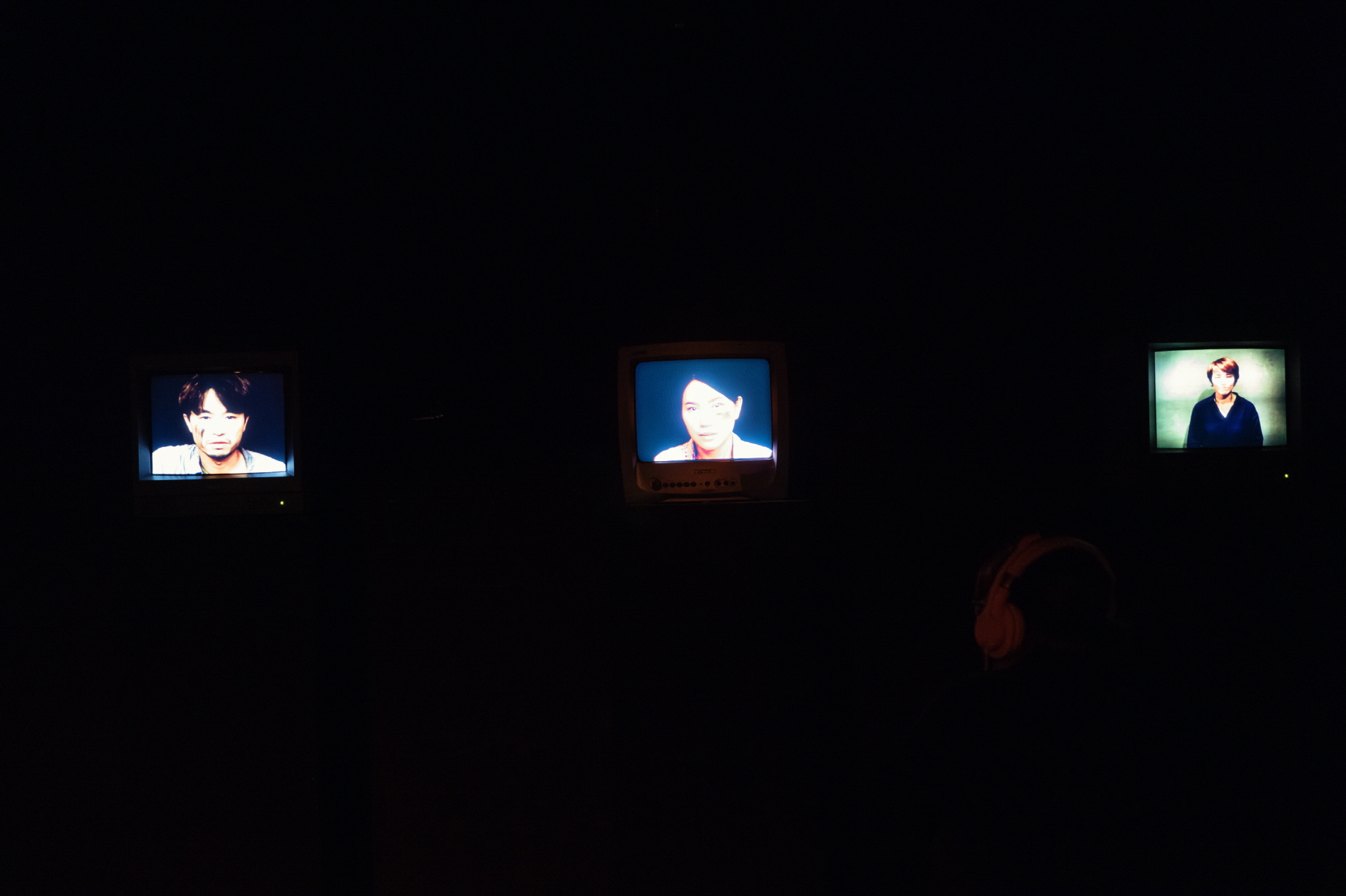 전쟁을 두 남녀의 전쟁으로 정의하면서, 그러한 관계의 끝없는 논쟁을 풀 수 있는 실마리를 한 사람이 더 개입하는 것으로 놓는 일련의 언어 다툼은 언어유희에 가깝다. 부조리극을 상기시키는 이와 같은 언어는 작은 모니터 안에 갇힌 배우들의 인공성을 보여주는 데 더 가까워 보인다. 헤드폰은 처음에 장비 테스트를 넘어 일종의 청력 테스트를 거치는데, 곧 소리가 들리는지 여부에서 나아가, 왼편과 오른편의 소리를 각각 들려주며 우리를 테스트한다. 이러한 신체 테스트는 사실 관객 편의를 위한 차원보다는 통일된 세팅 값을 표준으로 놓고 우리가 그 표준에 속하는지 아닌지를 검토하는 것으로 보인다. 그렇다면 이러한 통일화된 매체를 거친 듣기의 방식은 왜 채택되었을까.