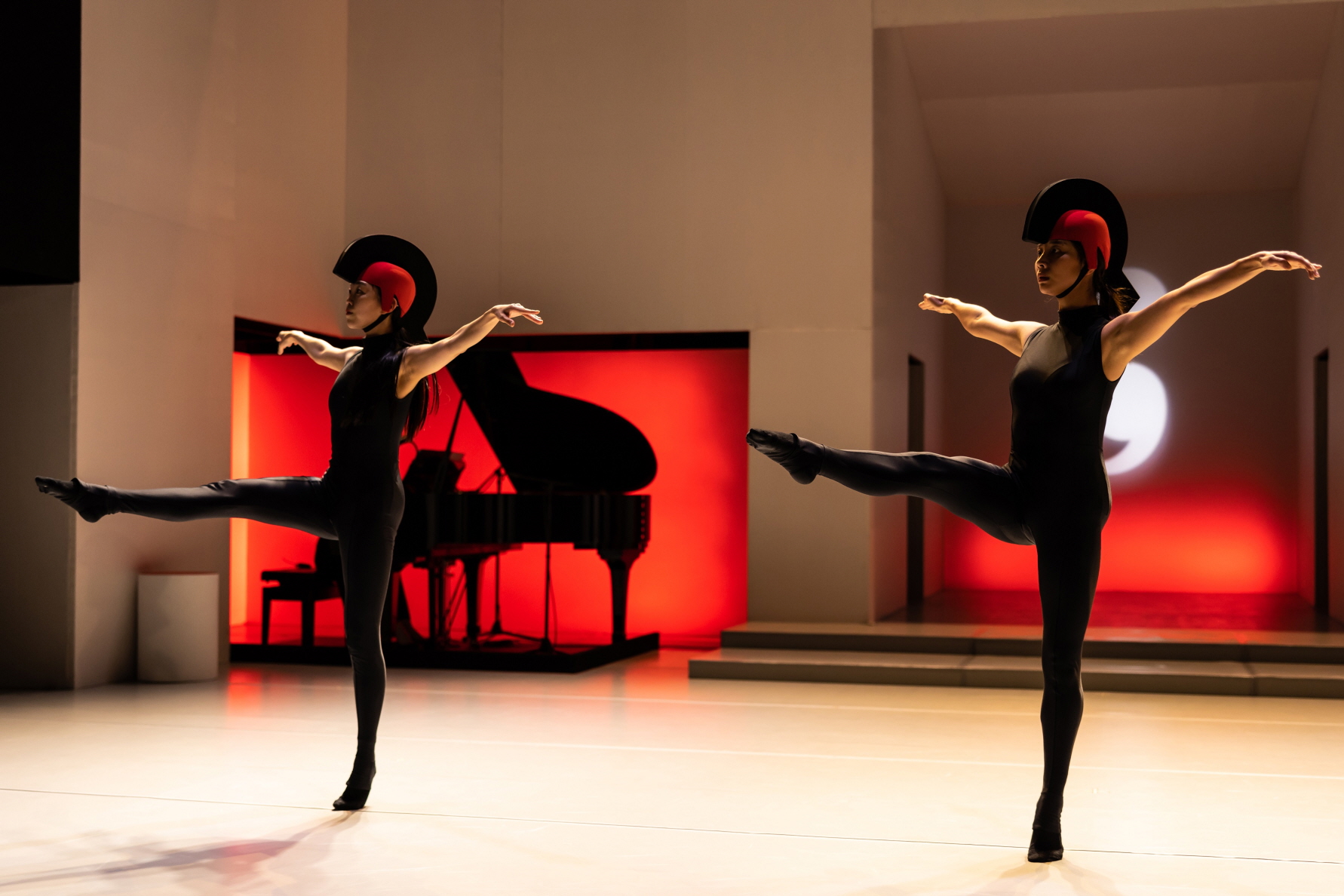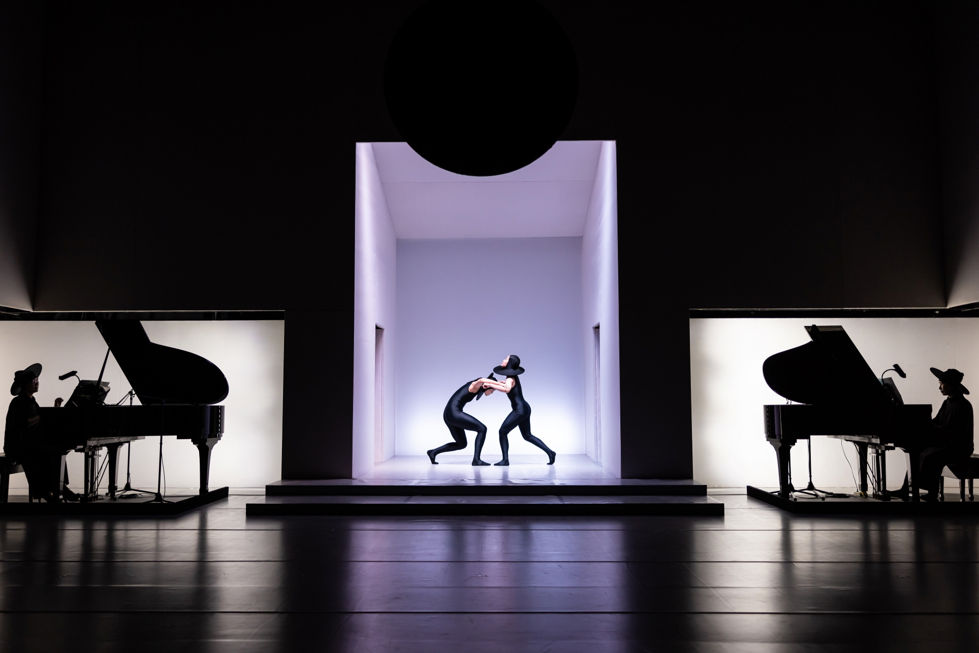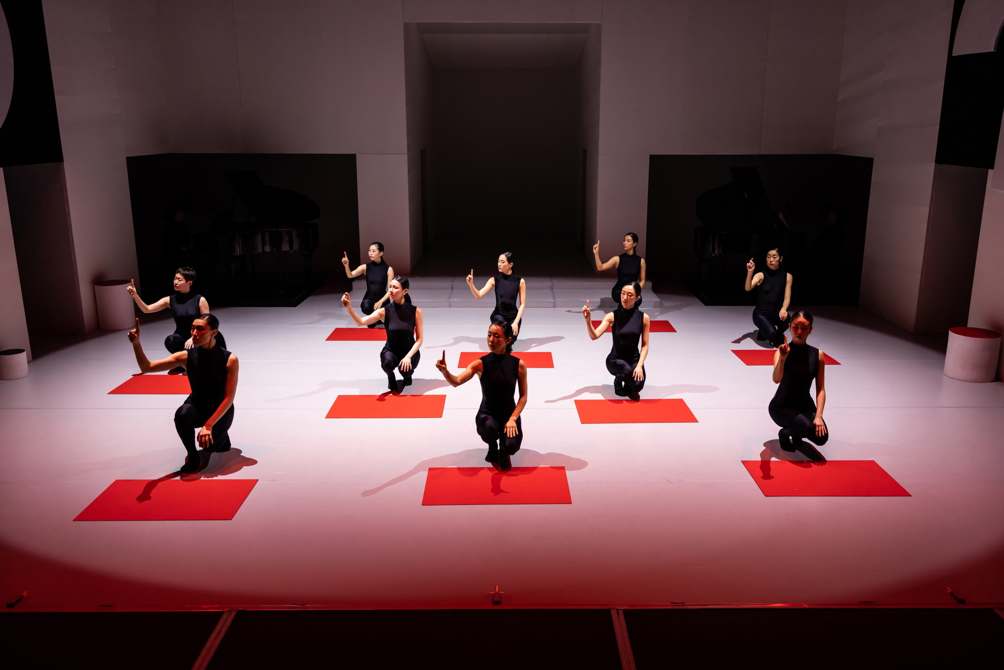 어둠 속 실루엣 장면은 의상의 시각적 지표를 거두고, 유려하고 부드러운 웨이브로서 움직임이 강조되는데, 이로써 분할된 신체 대신, 인간적 형상이 출현한다. 악기로서의 매체이자 시각적 오브제로서 판을 활용한 장면은 모든 무용수가 정면을 응시하며, 연주자로서의 정체성을 움직임에 혼합하는 양상을 보여준다.