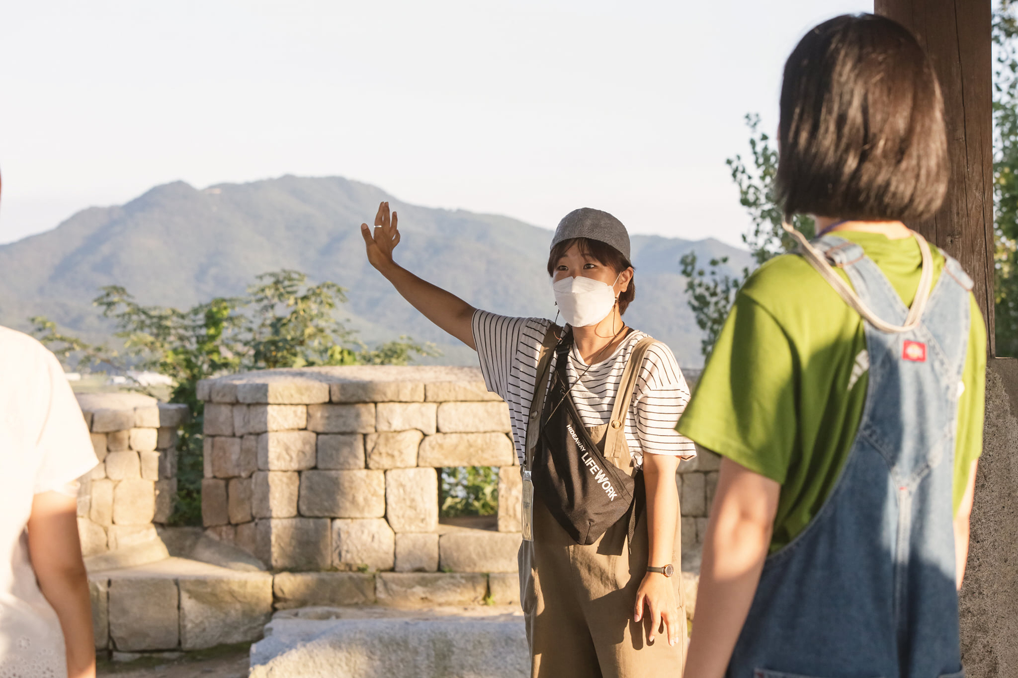 다시 차로 이동해 연미정에 올라 “예성강, 한강, 임진강, 염하까지 모든 강물이 만나는” 할아버지 강인 조강을 굽어보며 돌아가며 배우들 한 명씩 가이드를 하기 시작합니다. 이러한 장소를 굳이 통과하는 것은 북한과 남한의 경계를 물리적으로 구분할 수 없는 장소가 있음을 인식하게 하고, 바로 그 장소에 관객을 두기 위함입니다.