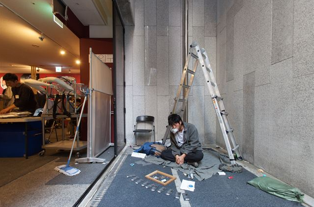 세종문화회관에서 열린 굿-즈(2015)에서 거지로 분장해 퍼포먼스를 선보인 김동규 작가. [사진=굿-즈] 출처: https://www.hankookilbo.com/News/Read/201510181624876515 2010년대 서울에는 신생공간8이라는 현상 이후 서울 변두리라 불리는 곳들을 포함해 더욱 너저분하게 공간들이 산적하기 시작했고, 서울의 더 많은 곳으로 예술이 분산되었지만, 서울과 지역 각각의 주권이 갖는 격차는 해소되지 않고 연장되었습니다. 마치 고시원이나 반지하를 전전하며 일종의 독립을 좇는 청년의 모습과 기존 제도와 공간의 문턱을 넘지 못하는 청년 예술가가 비좁고 허름한 작업 공간을 구하고 다시 그에 걸맞은 작품의 양식을 창출하는 것이 서로 상응하는 것으로 느껴졌습니다.