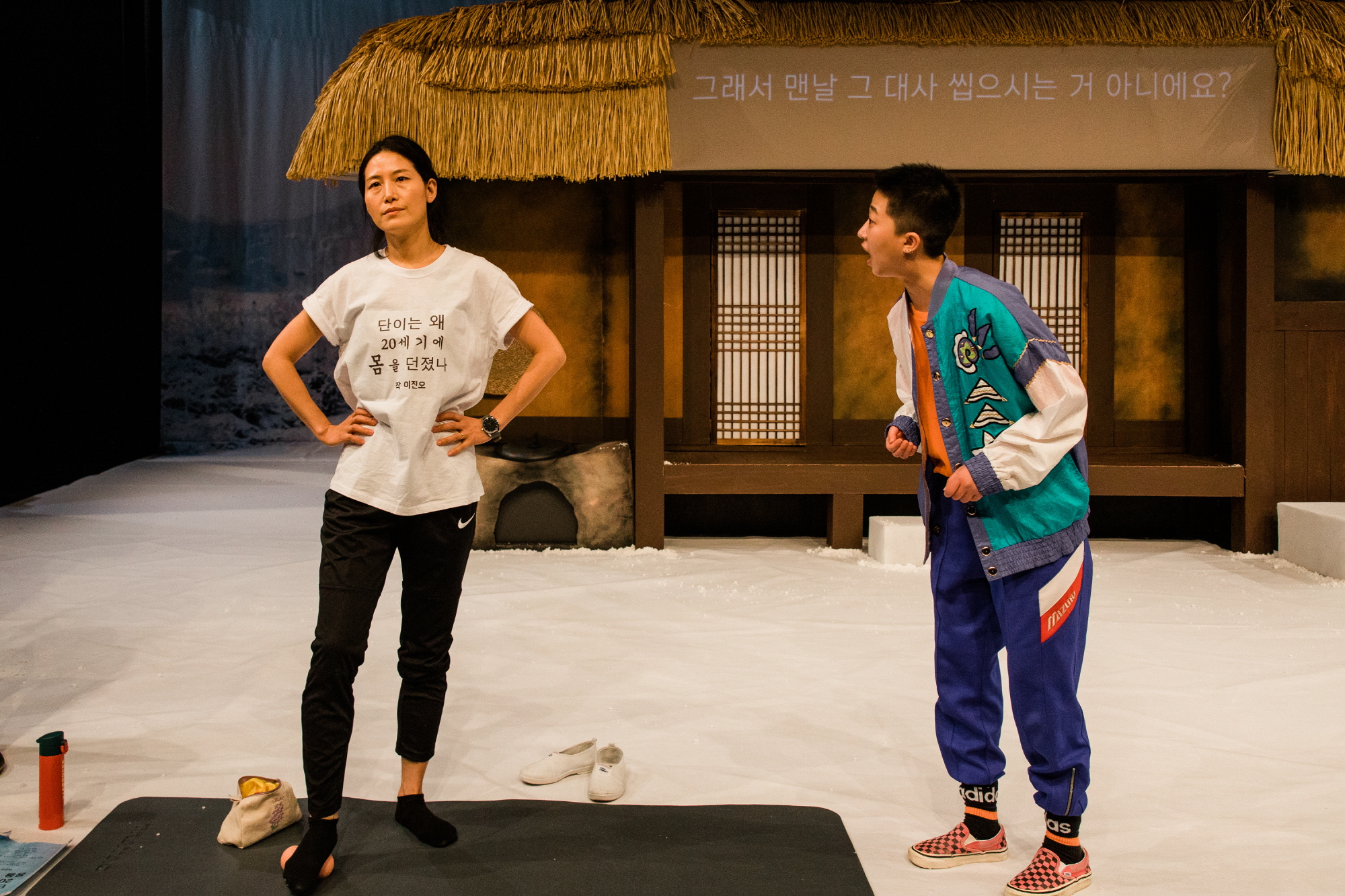 사진 왼쪽은 연출 역의 마두영 배우. 따라서 자기가 하는 연극이 시대착오적이며 그것은 그 주변의 변하지 않는 인식에서 온다는, 그것이 때때로 발생했으리라는 점에서 범순의 각성은 비범하기보다 다분히 ‘평범한’ 것인데, 이는 무엇보다 은호의 말 이전에 출현한다는 점에서, 연극의 제도 비평적인 시선은 이 안에서, 적어도 여성에 의해서는 현재 전제되고 동의되고 있다고 전제된다. 범순은 따라서 무지하지 않으며, 미투 이후를 인지하고 있으며, 그러한 개념이 연극의 기준으로 설정되고 있다―미투 이후와 동기화되어 있다.