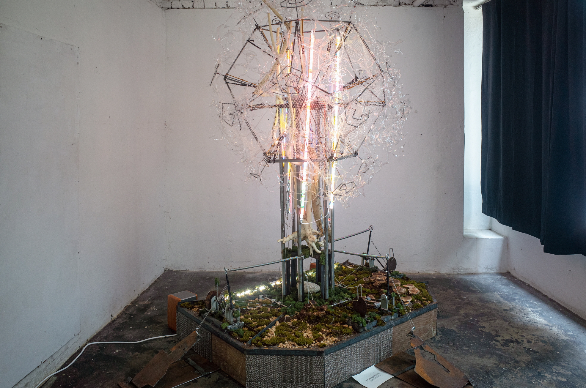 노드 트리, 〈땡볕, 초승달과 대추〉(2022. 캡틴의 수집품―수집된 무대의 일부, 잔해 더미에서 온 강철, 쪽나무와 참죽나무―딸기밭 하우스에서 온 강선, 그물망, 베어링, 래칫 렌치, 각종 고철, 비닐, PET, LED, MCU, 스피커, 배지, 표고버섯, 모래꽃이끼, 혼합매체.). 노드 트리의 〈땡볕, 초승달과 대추〉(2022. 캡틴의 수집품―수집된 무대의 일부, 잔해 더미에서 온 강철, 쪽나무와 참죽나무―딸기밭 하우스에서 온 강선, 그물망, 베어링, 래칫 렌치, 각종 고철, 비닐, PET, LED, MCU, 스피커, 배지, 표고버섯, 모래꽃이끼, 혼합매체.)는 부여에서의 관계와 자연, 사물을 활용한 아상블라주 형태의 작업으로, 작품의 페달을 밟아 그 관계를 가시화하고 연장하도록 유도된다. 삐거덕거리는 페달과 부풀어 오르는 비닐과 무언가 크게 변하지 않는 작품처럼 이전의 장소와 시간은 그것 자체의 반향과 완성 대신 덕지덕지 붙어 조합된 이 사물-관계 동맹의 우연하고 비의적인 조합의 생경함 자체로 연장되는 것으로 보인다.