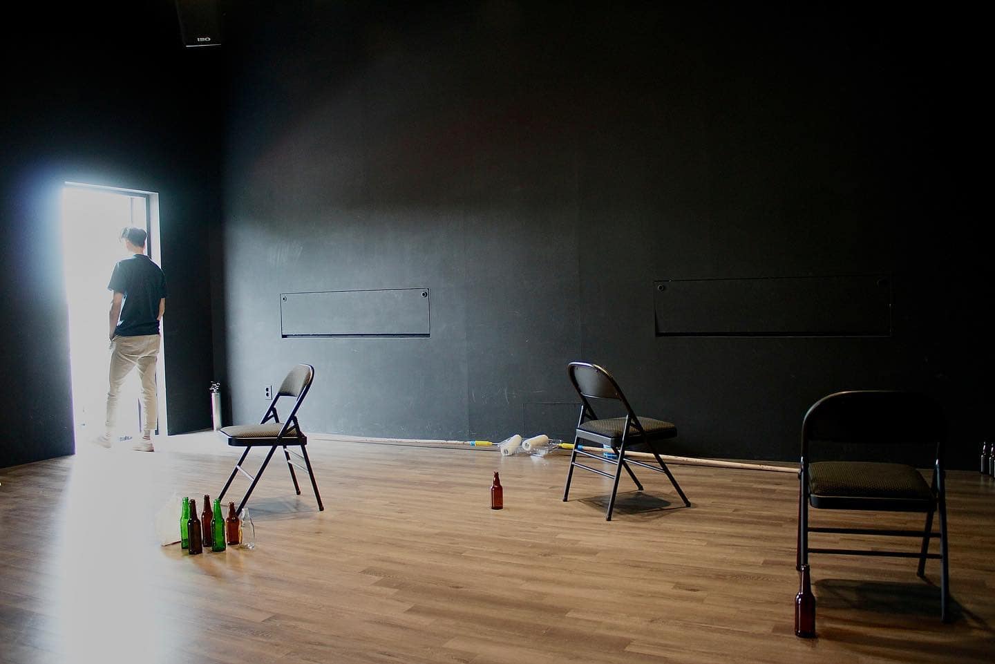 다시 극장 벽을 페인트칠하는 행위를 두 사람이 시작하고, 조명이 꺼진다. 보이지 않는 벽에는 진짜 물감이 칠해진다는 느낌에 더 근접해진다. 물론 이는 물감이 실제 칠해지는 것과 칠해지지 않는 미세한 두께의 더해짐과 끈기를 식별하지 못할 정도의 어둠은 아닐 것이다. 하지만 더 중요한 건 그 감각의 식별이 불가능할 정도의 어둠은 의미가 없을 것이라는 것이다. 희미한 어둠에 무언가가 분명히 더해진다. 그것은 곧 벽에 어둠을 더하는 행위이다. 그리고 역시나 창문을 반드시 열어젖히게 된다. 그 빛에 무언가가 달라진 것은 없다. 반면 환기는 그 미세한 효과를 수용하기 전에 또 다른 극장의 진실을 열어젖히는 것과 같다.