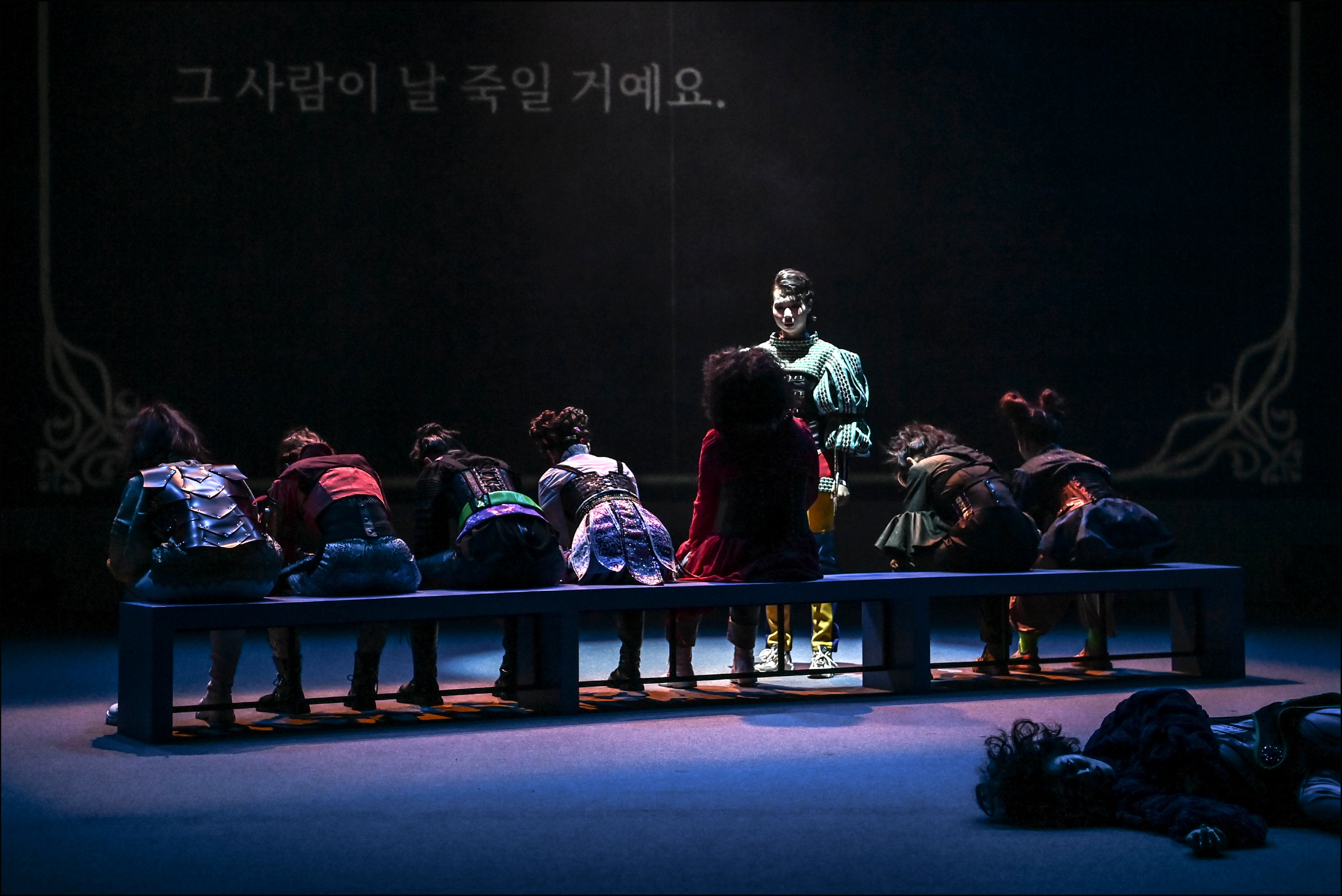 독재정권에 대한 은유로서 왕의 자리와 그 권력, 그리고 무자비한 폭력과 죽음은, 무대의 원-체험으로 제시된다. 이는 유일하게 이후의 메타-연극이 되기 이전에 ‘순수한’ 연극의 장면이다. 이 역시 20○○의 시대에 포로나(코로나에 대한 언어 유희임을 드러내는 작명) 시국에 디지털 콘텐츠 연극을 만들기 위한 재현의 일부임이 드러난다. 작품을 끌고 갈 수 있는 실질적인 주체가 없이, 캐릭터뿐만 아니라 스태프 안의 모든 역할이 흩어지고 재배열되어야 하는 상황에서, 배우들은 1/N의 몫을 가지고 공연을 진행하고자 한다.