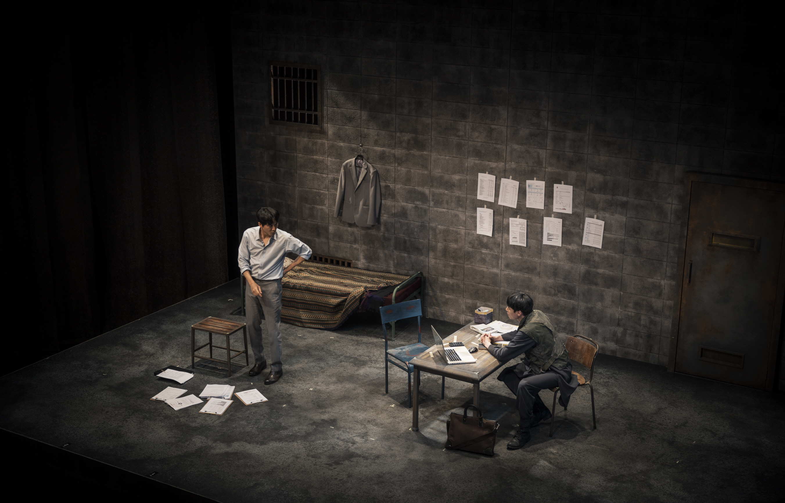 (사진 왼쪽부터) 닉 역의 성두섭, 바시르 역의 김동원 배우. ‘보이지 않는 손’은 애덤 스미스의 용어로, 시장에 경제를 맡기어 놓으면 저절로 물가가 조정될 것임을 전제로 한다. 이러한 경제에 대한 입장이 역사적으로 현실에서 이상적으로 구현되지 않음은 물론이다. 따라서 공산주의의 실험이 완전히 실패하지 않았음을 언급할 수 있음과는 별개로, 경제의 영역을 순수한 인간 너머의 영역으로 두는 것이 아니라, 정의와 평등의 차원에서 ‘정치’적 역량에 의해 재분배되어야 한다고 본다면, 바시르의 행위는 기존 시스템을 해킹하고 교란하며 좌우해서 전유하려 한다는 점에서 그리하여 아마도 정치 아래 경제를 복속시키려 한다는 점에서 두 체제를 모두 습득하고 이해하며 그 두 체제 가운데서 목적과 수단의 위계를 명백하게 설정하는 특이점을 갖는다.