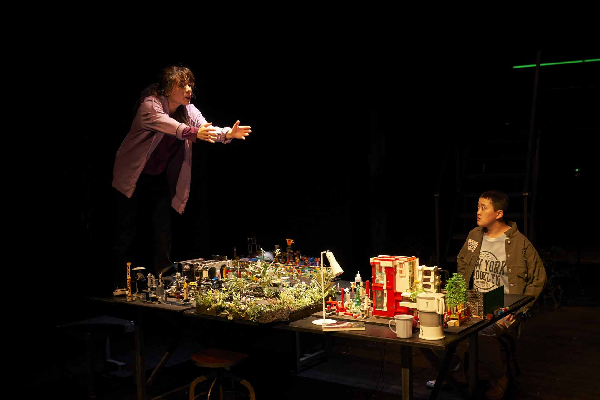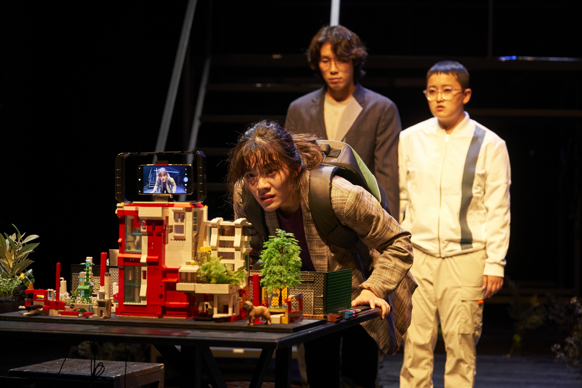 〈A·I·R〉는 레고로 쌓아 올린 미니어처 도시와 레고 인형을 생중계하면서 등장인물 각각에 대응하는 장면을 번역한다. 이러한 수고는 국가의 관리자 역할을 하는 컨덕터들에게 돌아간다. 무대 바깥에서는 아기자기한 장면으로 갈음되며 또한 일종의 확장된 무대 경험을 도출하는 심미적인 유희의 형식은, 사실 공연 내적으로는 국가의 시선에 의한 통치의 일환을 재현한 것으로 드러난다. 이러한 차원에서, ‘지니’의 자의식은 인간의 자의식이 어디서 오는가를 또 창의적인 생각을 수월하게 도출하는 방법을 규명하기 위한 과제가 되기보다는 그 국가의 결여를 보여주는 중핵으로서 자리하며, 국가를 전복시키고 교란하는 시스템 바깥의 힘으로 자리하게 된다. 곧 ‘지니’의 자의식을 시스템으로부터 관성화되어 있지 않은 존재가 발현할 수 있는 순수한 감정과 타자를 향한 공통 감각과 의식을 형성할 수 있는 능력에 초점을 맞춰 생각해볼 수 있다.