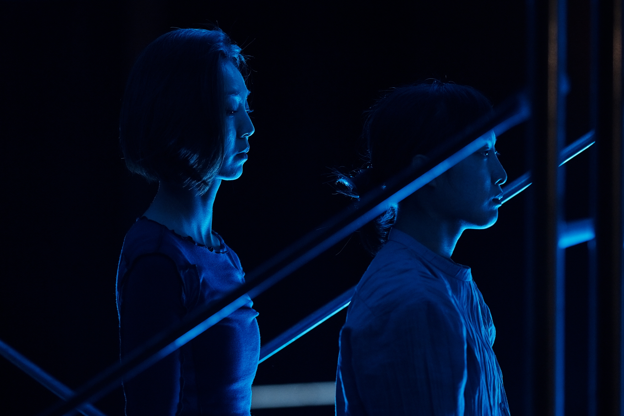 공간 중앙의 바닥이 무대가 되는 첫 번째 무대에서 마주 보고 모인 존재들은 동등한 존재의 성질을 띤다면, 세 번째 무대인 오피스 공간에서 결집된 구조로 넘어가는 과정에서는 송송희가 한 명의 존재가 된다. 바깥은 그 배경으로 송송희를 감싼다. 홀로 기어서 구조물의 통로를 지나치는 모습에서 캐릭터의 내면이 짐작되지는 않으며, 오히려 이는 공간의 허전함이 주는 정동 차원에 묶인다. 여기서 존재는 이질감을 준다. 그는 현실에 묶여 있되 그 현실 바깥으로 나오는 과정에서 시간이 미끄러진다. 마치 그 시간 바깥에 존재하듯 송송희는 관객을 빠져나간다. 최종적으로 이격된 존재로서 송송희는 공간 바깥에서 모래 더미를 만진다, 사라지고 흩어지는 시간이 물질적인 감각으로 영속한다는 듯이.