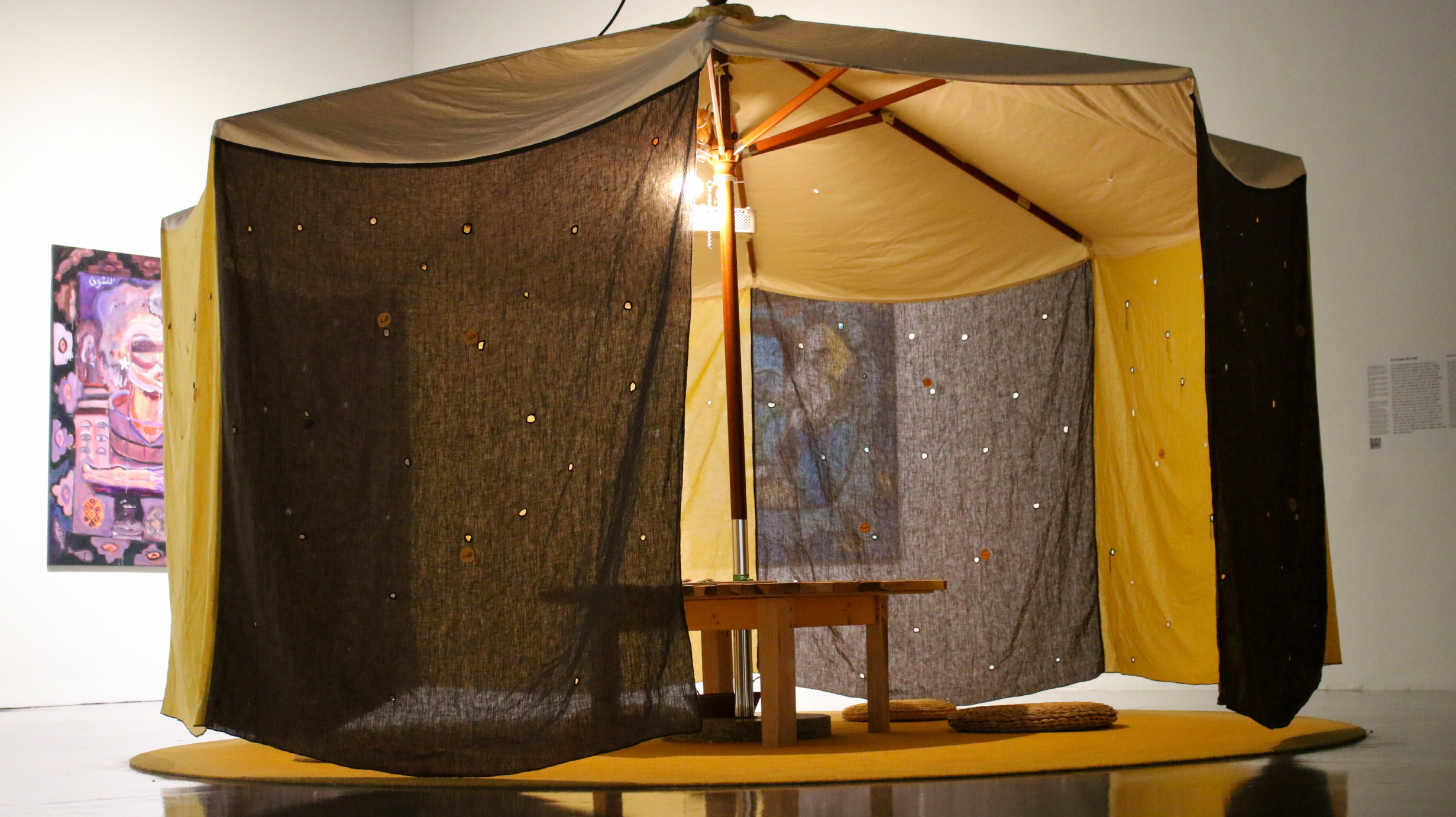 아마 부산현대미술관 1전시실에 들어가서 그 설명이 즉각적인 독해에 관한 어려움을 부르는 작업 중에, 가장 처음 맞닥뜨리는 ‘샌디 로드리게스의 연작 〈코덱스 로드리게스-몬드라곤〉(2017~)에 관한 텍스트는, “… 미국과 멕시코 국경 지대에 얽힌 역사의 상처를 그려 내며 그 치유를 돕는다.”라는 문장처럼 그는 타자에 관한 접근을 예술가의 윤리로 삼는 것으로 보인다. 물론 조금 더 객관적인 자리를 점할 수 있는 방법도 있다―알렉산더 우가이는 “옵스큐라톤(obscurton)”이라고 하는 “핀홀 카메라의 원리를 기반으로 특정 사건과 기억의 장소를 기록하는” 작가의 “조각적 설치이자 작업 방법”을 선택해, 고려인 디아스포라의 두 가지 역사적 장소를 찾아 기록한다.