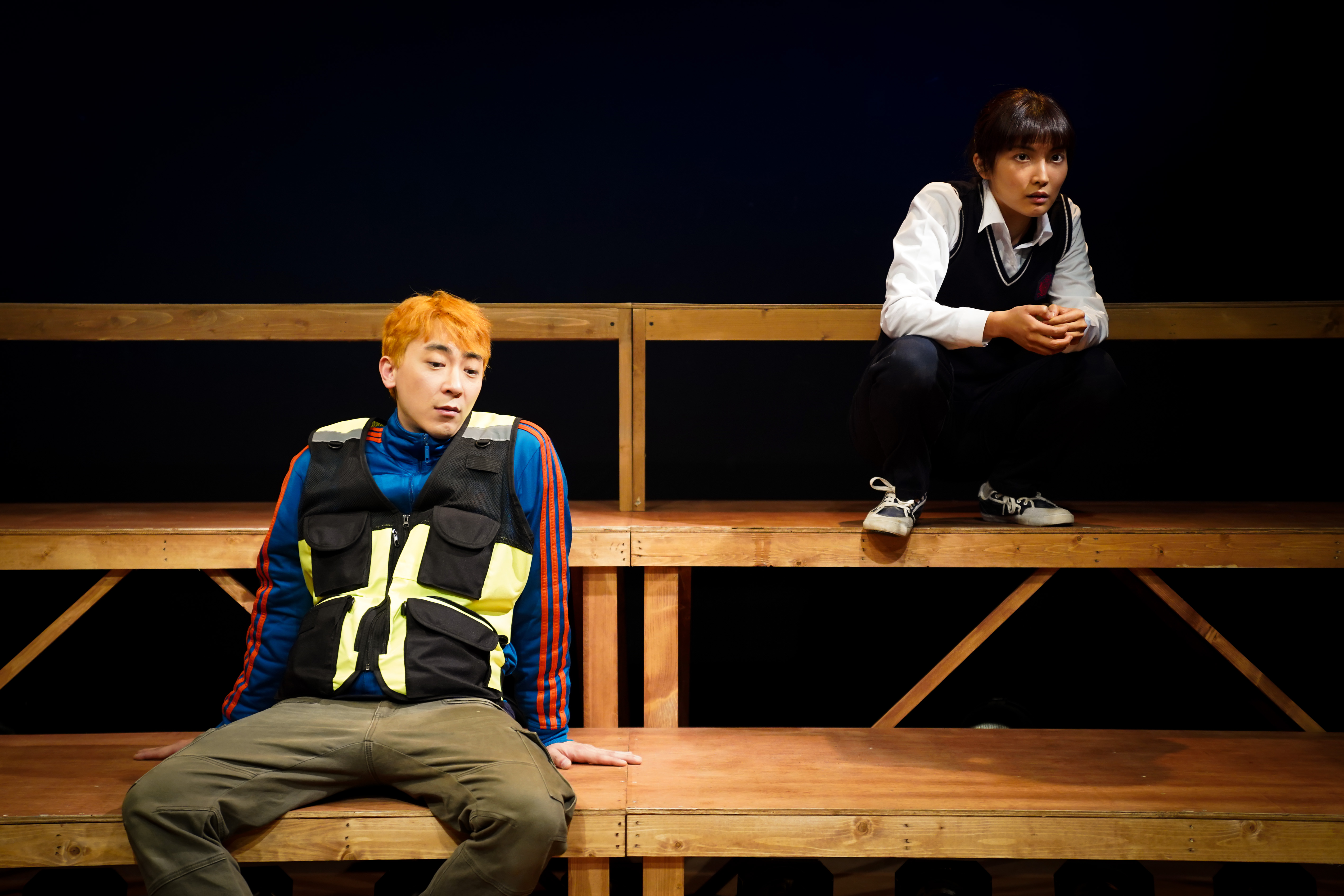 (사진 왼쪽부터) 세훈 역 최호영, 밀리 역 조혜안. ‘미등록 이주민’ 모녀 관계인 밀리네, 밀리(조혜안 배우)와 엄마(이은정 배우), 이들을 식당 직원으로 채용한 호영(이재혁 배우)의 아빠(최태용 배우)와 호영, 부자 관계, 이 두 가정의 네 인물이 하나의 중심 무대로서 식당을 공유한다면, 그 사이에는 이를 불법으로 고용했던 전 사장(강세웅 배우)가 있다.