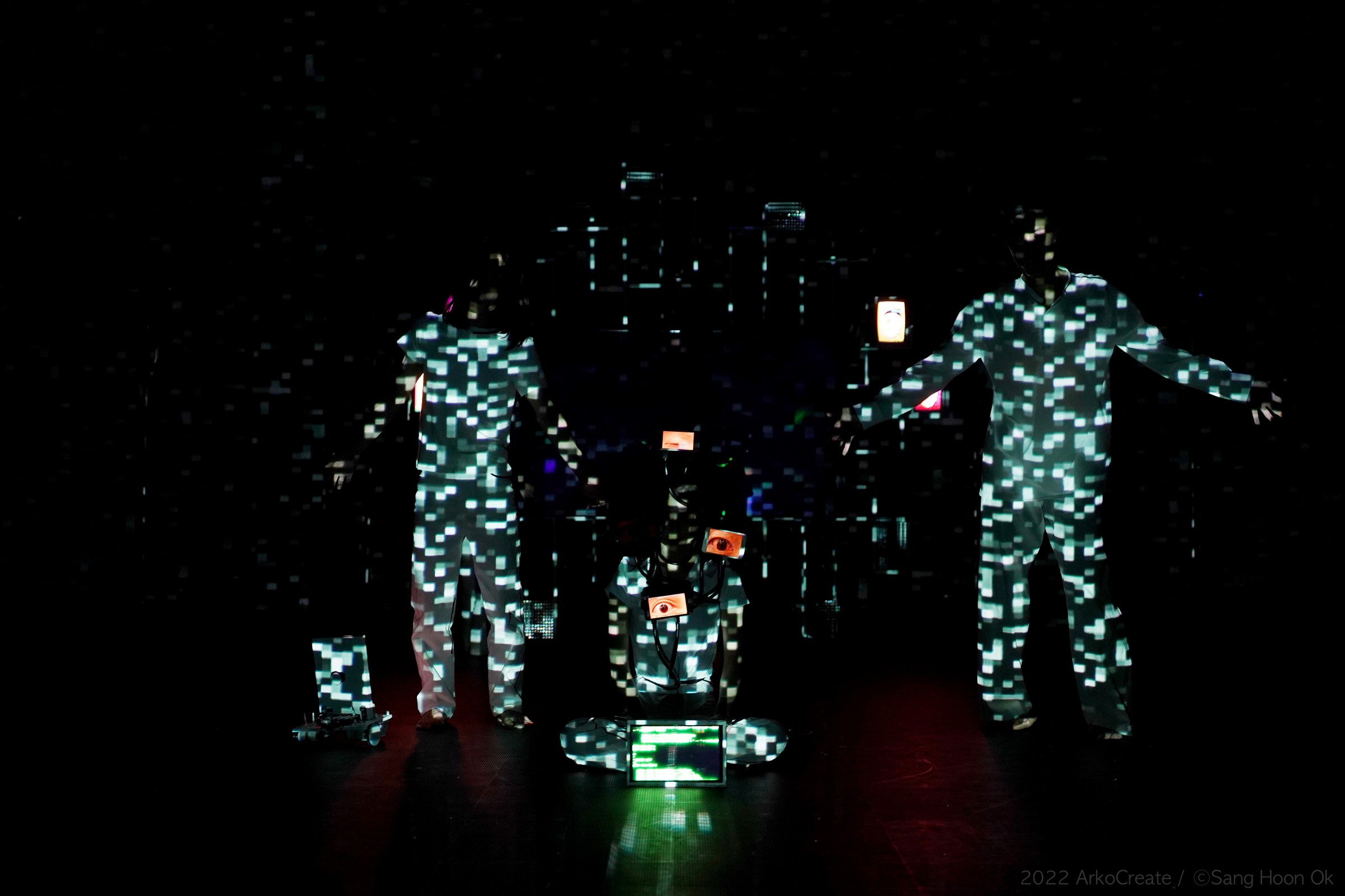 댑댄스프로젝트, 〈> "hello world" ;〉ⓒ옥상훈[사진 제공=한국문화예술위원회](이하 상동). 댑댄스프로젝트의 〈> "hello world" ;〉(이하 〈hello world〉)의 무대는 몸 이외의 것들로 채워지고 변화한다. 무대를 채우는 몸의 엔트로피를 확인하는 빈 공간의 미학이 꽤 잘 활용될 수 있는 무용의 어떤 향상적인 전제는, 여기서 조금 다른 궤도를 그리게 된다. 매체의 추상성과 구체성이 복합적이고 중층적으로 공존하는 무대는, 디지털 이미지의 반영성을 몸으로 재조합하는 행위로 변환된다.