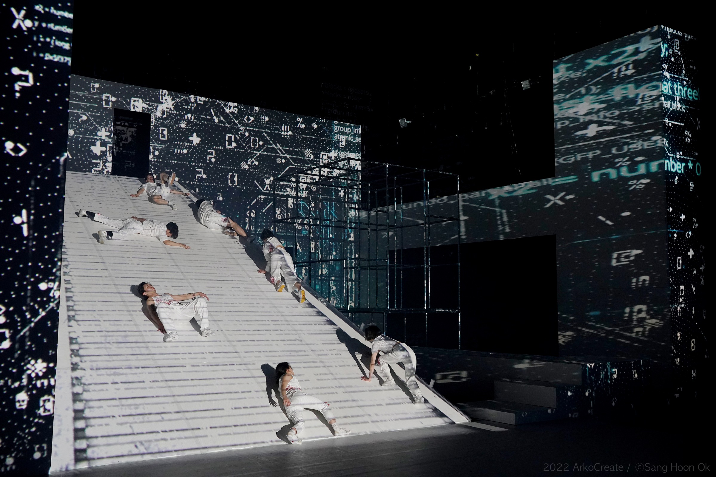 낙하하고 곧 튕겨 나오는 신체, 곧 순식간에 사라지는 이미지는 그 사라지기 직전의 순간과 그 ‘원위치’를 교환하게 한다. 이에 따르면 이미지는 사라지지 않았으며, 이미지는 나타나지 않았다. 일종의 착시가 주는 놀라움은, 그것이 물리적 메커니즘의 재현적인 차원에서 인간 존재의 의식적 서사를 조명하지는 않는다는 점에서는 테크닉적이다. 반면 계속된 무의식의 작용과 함께 육체를 사로잡는 반동적인 육체 자체, 곧 움직이지만 거기에 어떤 의식적인 표정을 기울이지는 않는다는, 곧 어떤 ‘영혼’ 없이 그것을 한다라는 명제에 이르면, 〈Recall; 불러오기〉는 후반에 더욱 가까워진 서커스라는 형식의 테크닉적 시현의 성격에 더해 암묵적으로 기계적 메커니즘을 재현하는 신체라는 도식 관계를 설정함으로써 그 성격을 지속한다. 그 이상의 은유는 찾을 수 없을까.사유 없음으로서의 충동적인 신체는 스펙터클한 광경을 위해 복무한다. 그 전에 〈Recall; 불러오기〉는 일상-말과 스턴트 치어리딩, 와킹 등 다양한 장르적 양식을 도입한다. 후자는 극장 바깥, 스트리트 아트의 장르적 특질을 직접 가리키기도 하는 듯 보이는데, 가령 왁킹의 시현은 관객 전면으로 고스란히 열리며 무대를 열어젖히는 효과를 발생시킨다. 이는 무대라는 일상을 구성한다는 점에서, 그리고 이후 연장되지 않는다는 점에서 다분히 나열되는 이미지로 휘발된다.