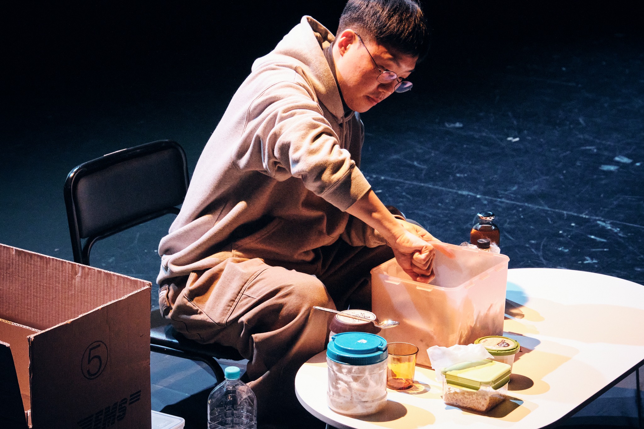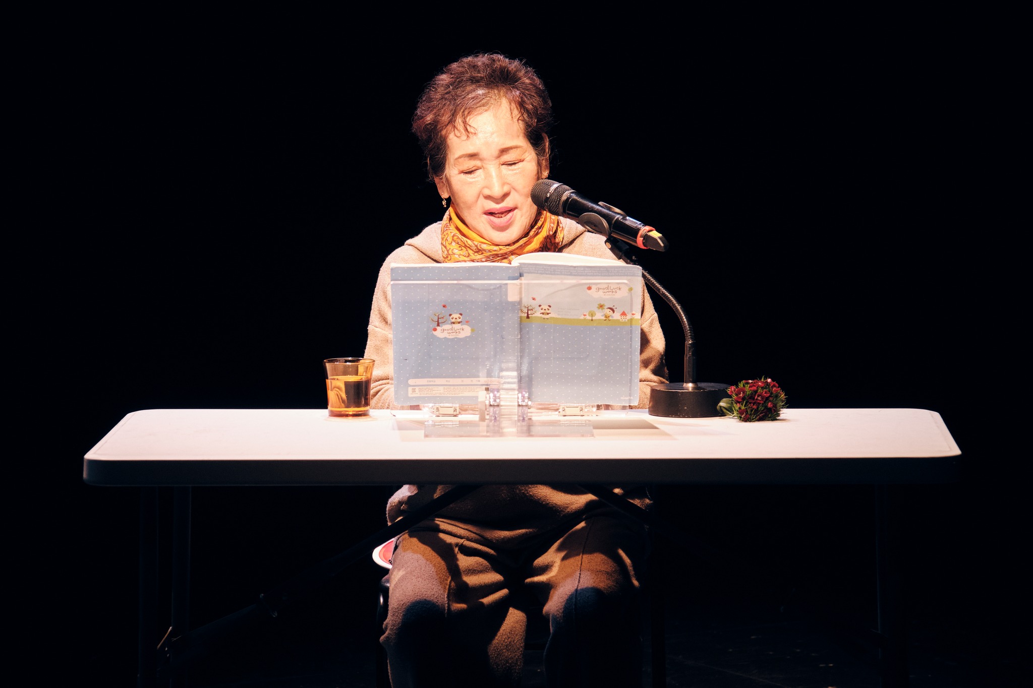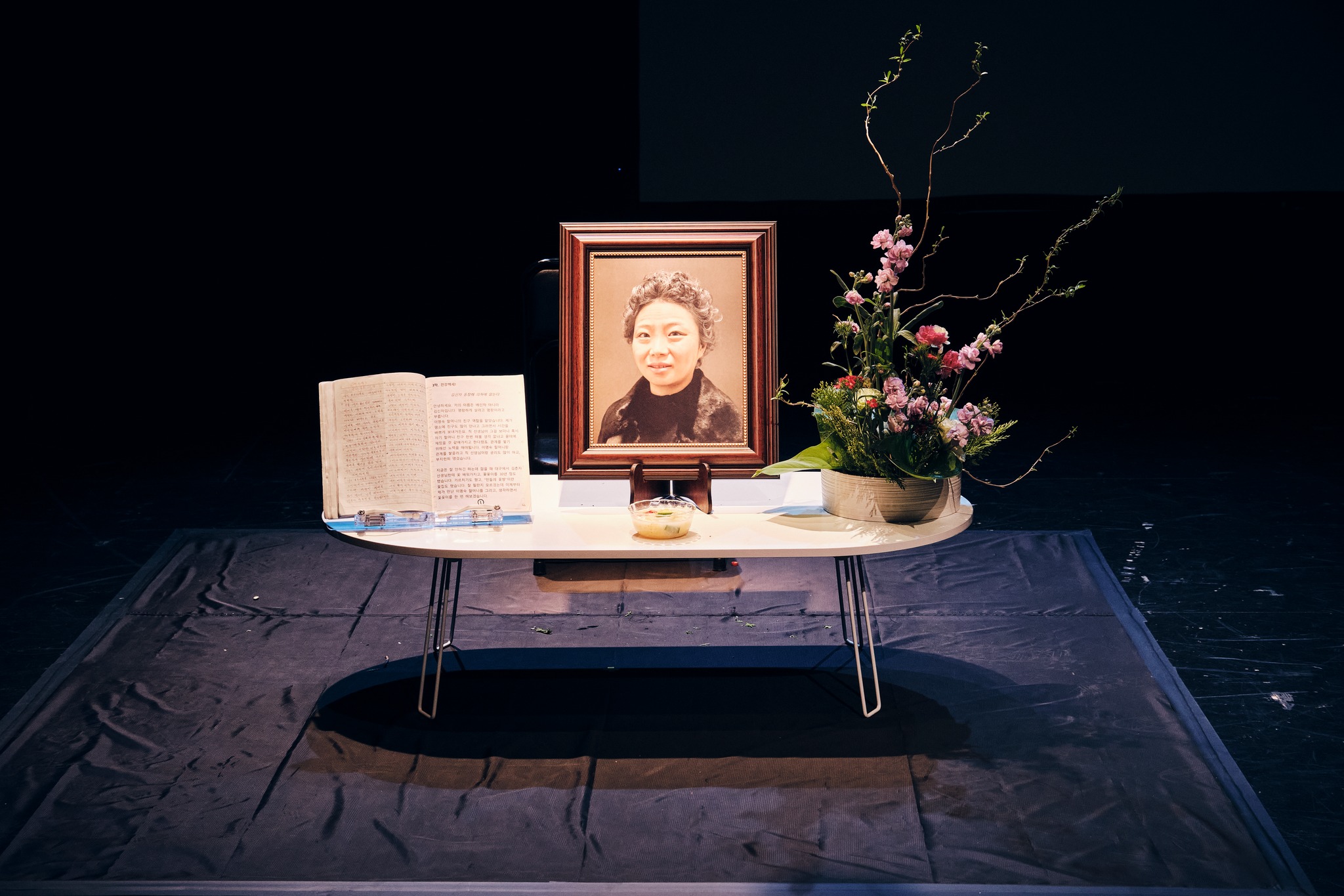 이성직은 이런 가상의 연기를 지시하고 감독하는 이로서 그의 대타자가 되고—그는 “(이성)직 선생님”이라는 호칭으로 이성직을 가리킨다.—, 이예빈은 이명숙을 마주할 수 있는 의사 존재가 된다면, 또는 이명숙이라는 시간을 연기하는 동료가 된다면, 이 시간 안에서 이명숙은 이성직과 이예빈 바깥의 존재가 될 수 없다—그는 그 둘이 주는 정보 바깥을 마주할 수는 없다. 그러니까 그의 슬픔은 그 바깥으로의 틈을 발견한 것 아닐까. 누군가의 공통적인 죽음(으로서의 쓸쓸함). 추모 행위를 위한 공연이지만 공연을 위한 추모이기도 하다는 모순은, 추모 행위 자체가 추모에 상응하는 감정을 불러올 수 있음과 만난다.