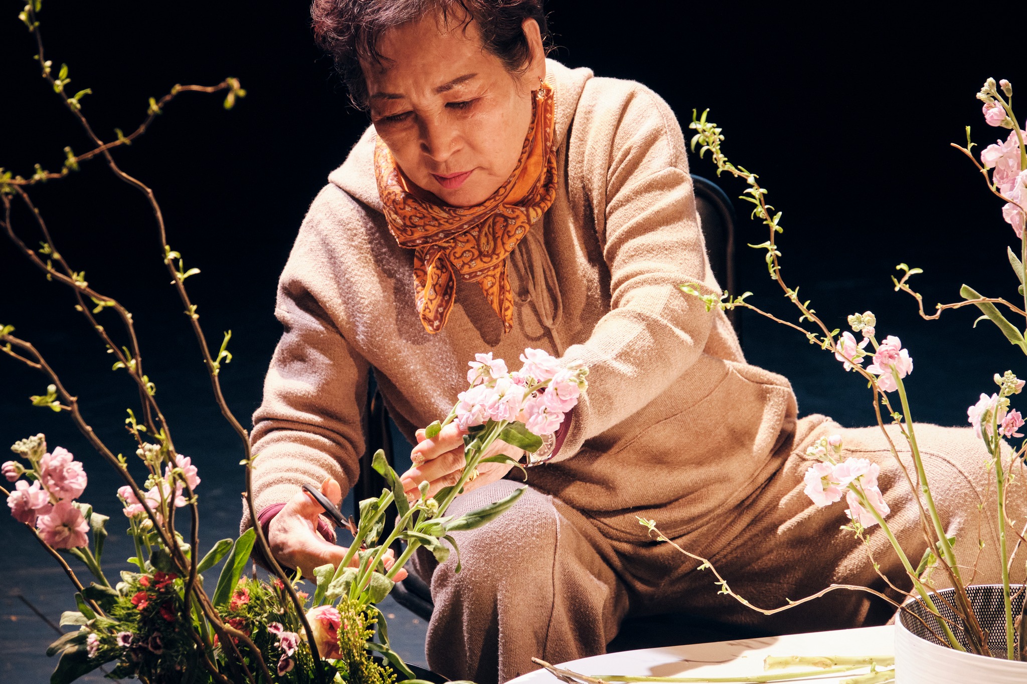 이명숙이 아닌, 자신의 남편과의 관계, 젊은 날부터 직업으로 꽃꽂이를 해온 시간 등을 이야기하는 김신자는, 꽃꽂이하며 이명숙을 애도하는데, 실제 만나지 못하는 이에 대한 애도는 비로소 관계를 맺으며 다가가고자 했던 이명숙이라는 존재를 입은 이예빈과의 시간과 그 시간을 전후로 한 더 넓은 시간의 스펙트럼과 함께 존재하는 이명숙-이성직-이예빈이라는 존재 자체를 향하며 그 스스로에게 슬픔을 불러오는 듯하다. 애초에 주어진 그 둘의 혼동 또는 종합이라는 형식은 이명숙이 누구인지에 대한 물음의 중요성을 유예한다.