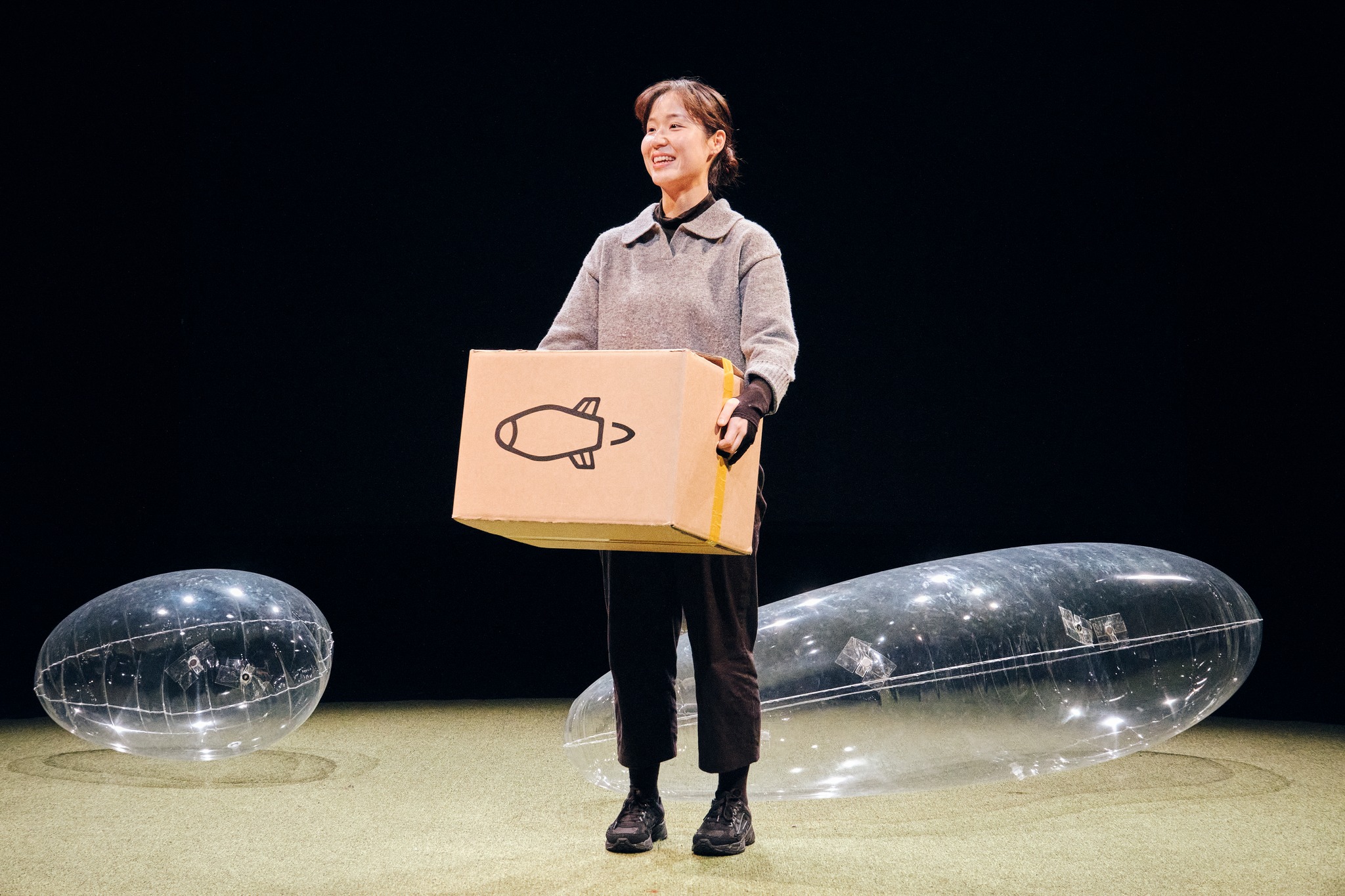 (사진 좌측부터) 박세련 연출, 이진경 배우, 정대진 배우. 해와 바람의 다툼, 그리고 이를 방관하는 구름으로 인해 비가 내리고 제어되지 않고 홍수가 나서 생물들이 죽고 무덤으로 뒤덮인 세상이 된다. 이제 세상의 수많은 구멍은 갖은 생명체의 무덤이 된다. 또는 세상은 구멍 자체가 된다. 죽음을 삶으로 분리하는 게 아니라 끊임없이 삶의 일부로 통합하는 데서 나아가 죽음으로 삶이 흡수되는 반복으로서의 서사는, 생명이 없는 것, 곧 초반에 죽음으로 지정된 인형을 생명으로 만들거나 이를 모사해 인형의 움직임을 따라 하는 두 배우의 삶과 죽음의 ‘접촉’, 또는 호환으로의 의지로 연장된다. 죽음을 만지기도 하지만 그 죽음에 동화되기도 한다.