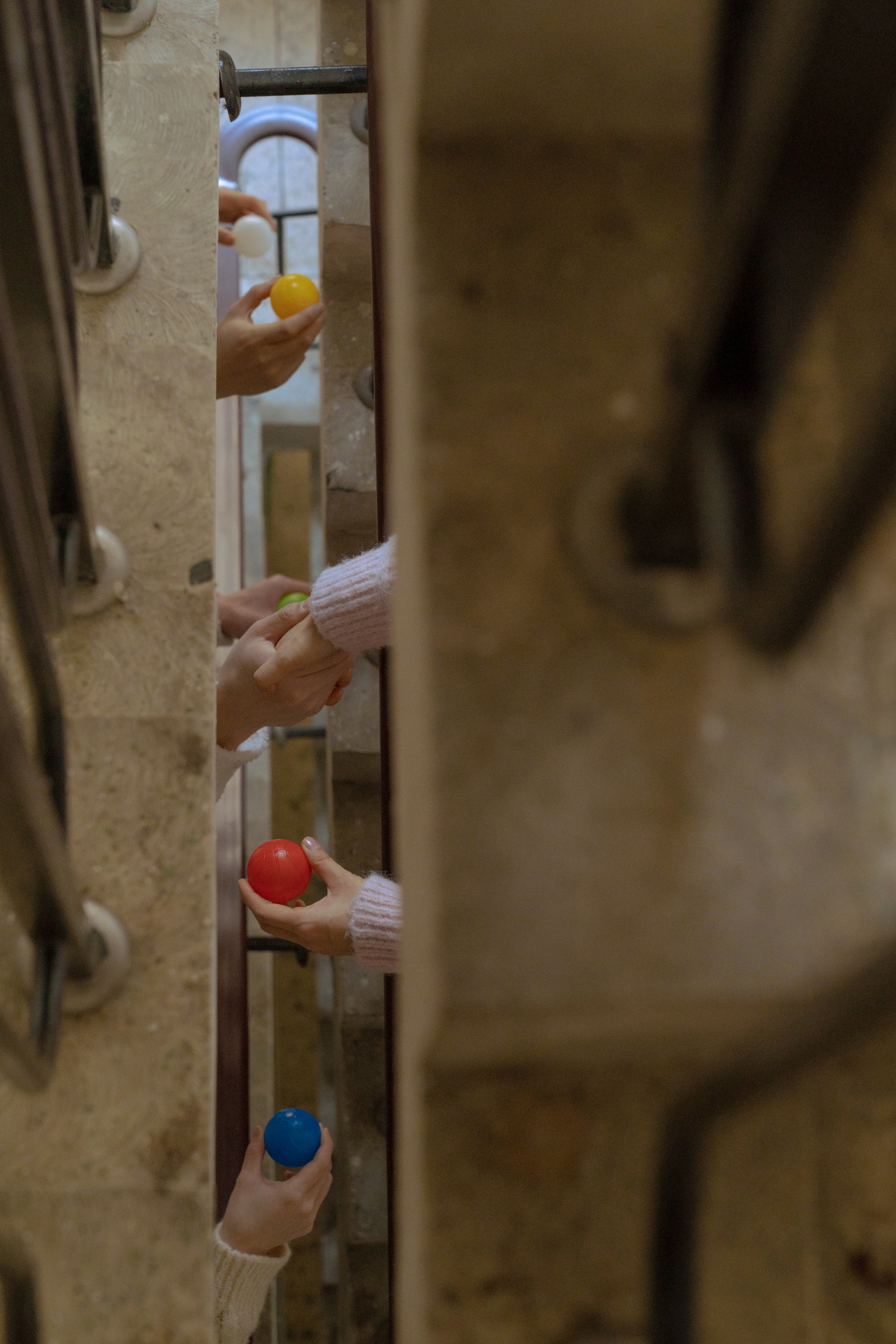 모든 퍼포머가 집산하며 관객과 인사를 나누는 마지막 옥상 공간에서는 건물 안쪽의 양옆 벽 사이의 공간에서 다시 관객이 있는 쪽으로 이동하며 진행되는데, 사이 공간을 통한 극적인 장면의 연출은 종국에 옥상 꼭대기에서 관객에게 떨어뜨리는 공들과 함께 서로를 마주하는 커뮤니케이션으로 전환된다. 이러한 장면들은 앞선 계단과 계단 틈의 기이한 커뮤니케이션의 거리감을 재확인시키는 한편, ‘이웃’ 자체로 서로를 현상하기에 이른다.