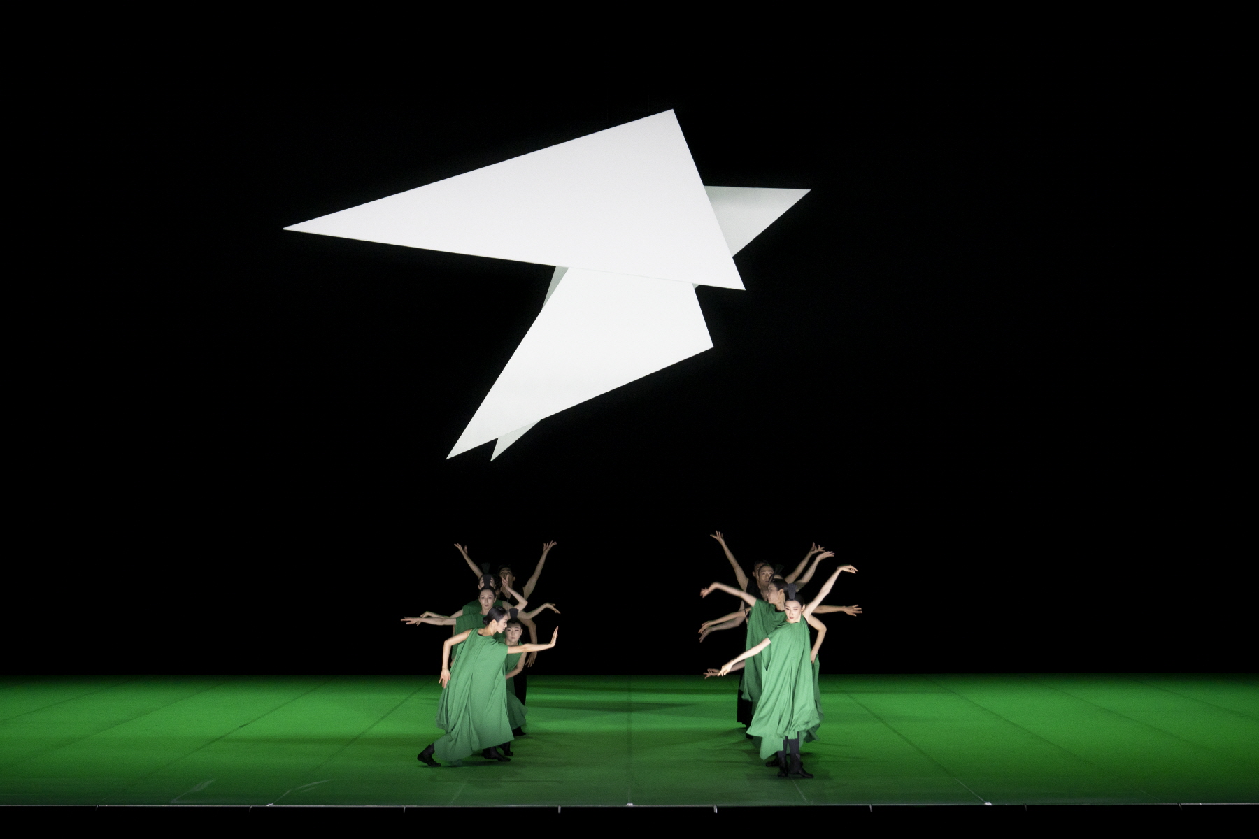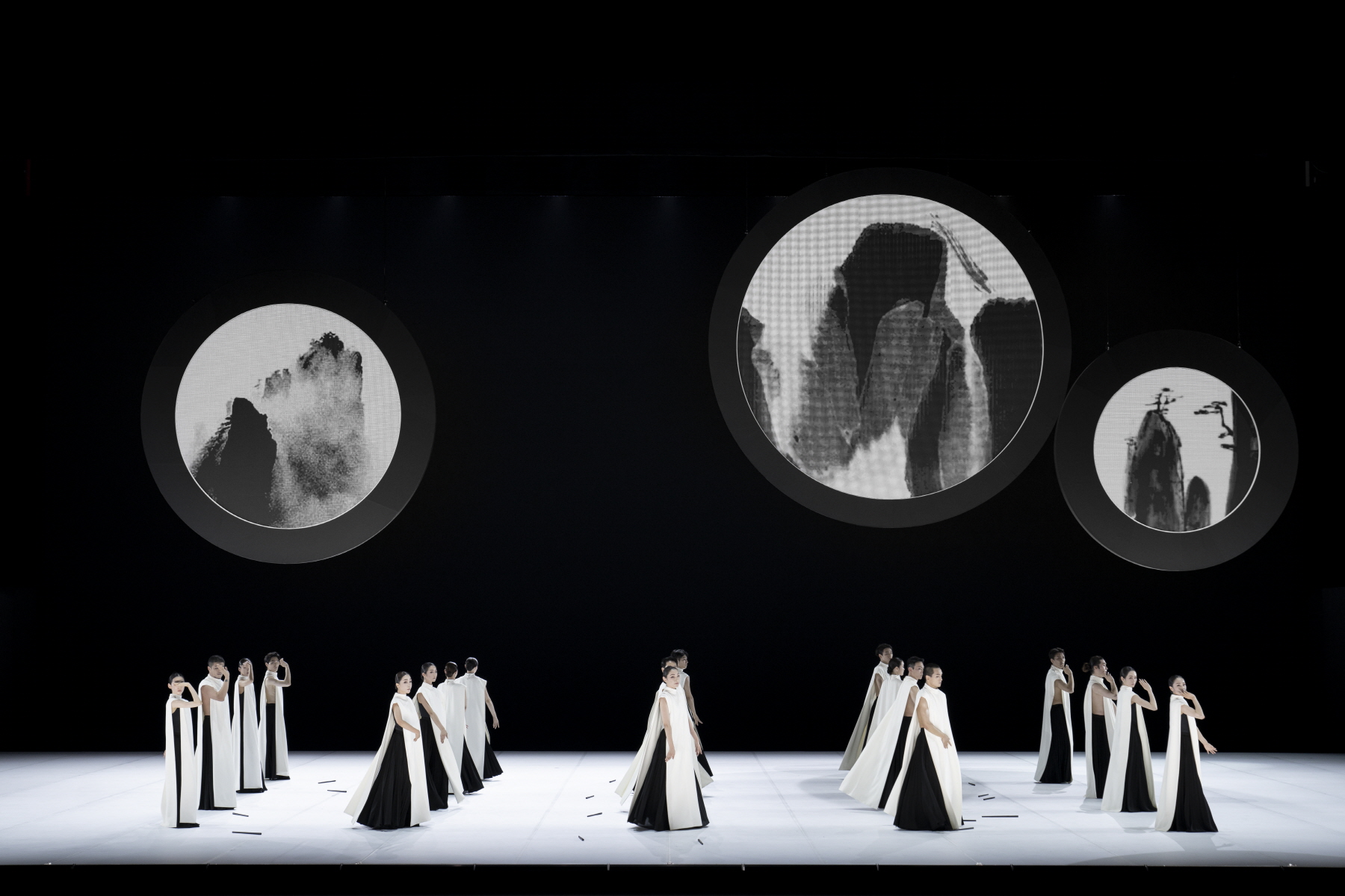 곧 무용수의 제자리에서의 부상과 그 무게감이 내는 정중동의 움직임은 줄에 매달려 멈춰진 사물로 수렴될 정도로 극도로 정제되면서 거꾸로 거대한 이미지의 질서에 속한 하나의 점이 되게 된다. 이러한 미니멀리즘의 극단적인 미학은 이미지에 비해 움직임의 자율성과 유려함을 강조하기보다도 이미지의 한 장면으로서 감축되는 움직임의 질서 자체를 보게 만든다. 거대한 스펙터클의 질서를 보여준 1막에 이어, 원형 LED 등의 무대 장치가 흩어지고 모이며 무대 중앙의 전면을 계속해서 차지하고 그 밑에서 정면성이 강조되는 2막에서의 무용수들의 움직임 역시, 실은 거대한 이미지 장의 구획과 그에 따른 움직임 자체의 재편을 구성한다.