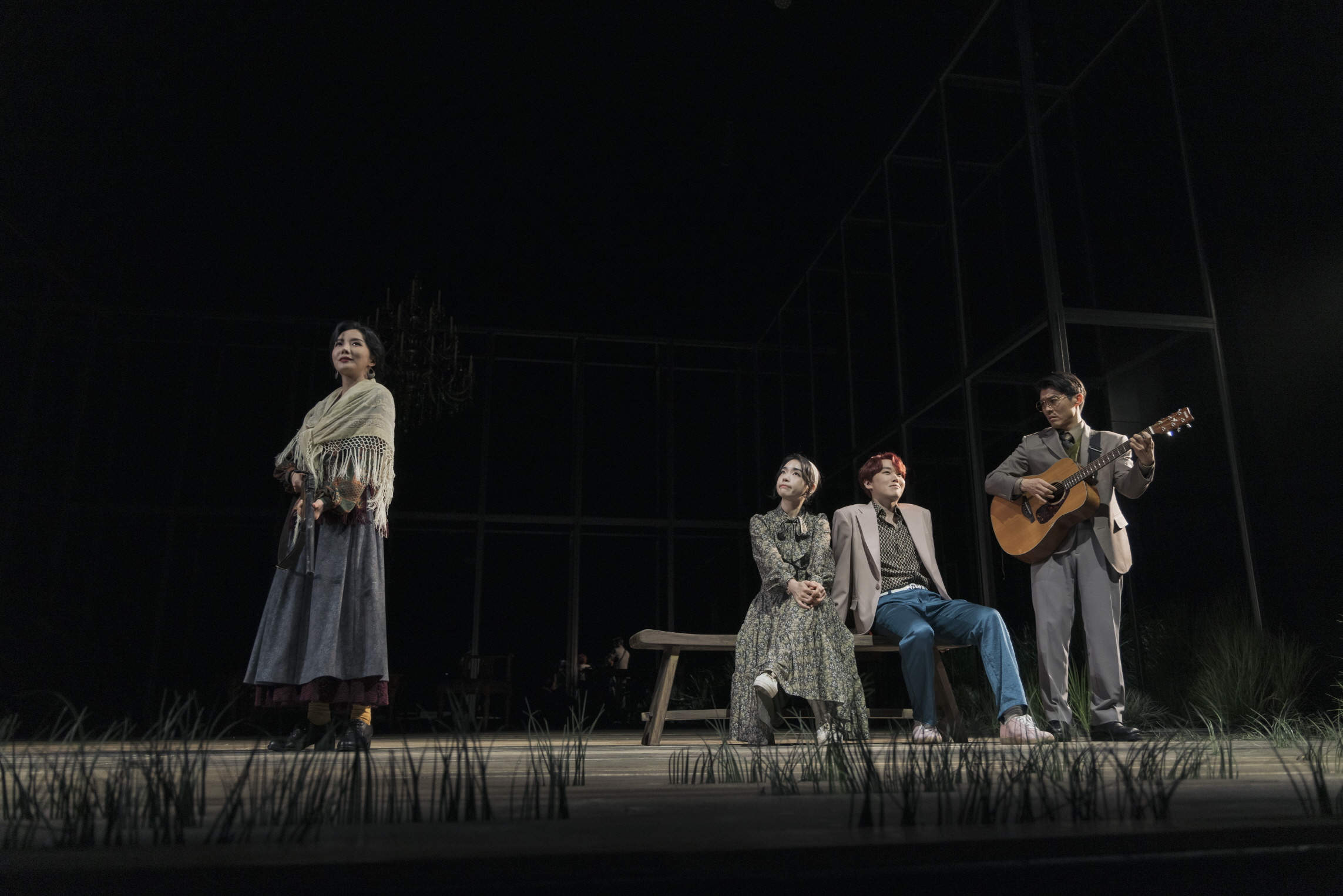 (사진 왼쪽부터) 샤를로타 이바노브나 역 하지은, 두나샤 역 홍지인, 야샤 역 장석환, 에피호도프 세묜 판텔레예비치 역 송철호 배우.