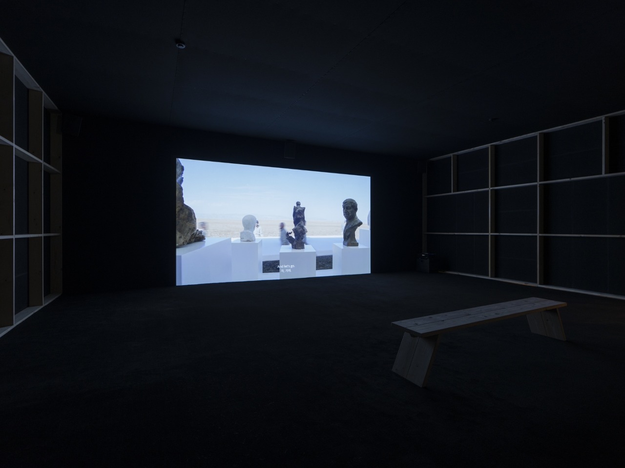 타우스 마카체바( Taus Makhacheva) 의 〈독수리 평원〉(2023. 단채널 영상, 컬러, 사운드. 58분 39초.)ⓒ글림워커스[사진 제공=광주비엔날레] 주제관의 가장 인상적인 작업 중 하나인, 타우스 마카체바(Taus Makhacheva)의 〈독수리 평원〉(2023. 단채널 영상, 컬러, 사운드. 58분 39초.)은 작고한 마카체바의 할아버지이자 소련의 유명 시인이었던 라술 감자토브에 대한 작가의 기억과 여러 사람의 이야기를 겹쳐낸다. 그 장소는 다게스탄의 독수리 평원으로, 인상적인 건 이 평원 위에 무대를 가설하는 과정 자체를 보여준다는 것이다. 곧 시각적 이미지에 대한 관점의 이동이 드러난다. 시각적 이미지는 그 자체로 결정되기보다 어떤 시점에서 공간 안에 위치하고 다시 그 프레임 바깥에서 재구성되는지, 그 프레임이 구성되는 과정에서 사라지는 발생과 소멸의 이미지다. 가령 무대 벽면에서 하나의 블록을 제거하면, 자연 풍경이 튀어나오는 것과 같이, 가상의 무대는 실재의 자연과의 경계에서 그것이 가상임을 드러내는 것으로써 일순간 놀라움의 효과를 안긴다, 그것이 얼마만큼 실재 같은지가 아니라. 무대는 실재가 아니라는 점에서, 곧 무대가 만들어지고 그 위에 증언자를 불러 세우는 과정 전체로써 그 스스로가 무대 위의 재현임을 드러낸다는 점에서, 이러한 무대의 가설 과정은 기억의 재구성이 갖는 허구성과 실재의 경계를 가리킨다고도 할 수 있다.