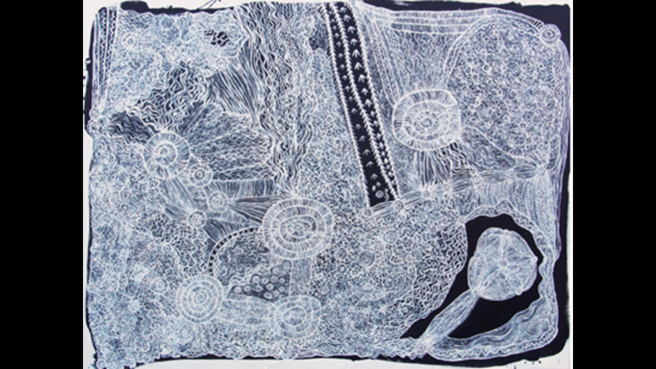 주디 왓슨(Judy Watson)의 경우, “퀸즐랜드의 여러 강과 개울에서 수집한 자연물들로 만든 회화 연작”을 선보이는데, 캥거루풀이나 홍합 껍질 등을 덧붙이거나 천연염료로 물들이는 등의 자연 재료의 사용, “작품의 구성 요소를 발견한 장소의 이름을 바탕으로” 한 작명들―가령 〈죽은 나무가 있는 버룸강〉(2022. 캔버스에 인디고 및 아크릴, 235×178cm.)은 “오스트레일리아의 선주민 공동체가 특정 지리를 기억하는 방식을 상기시”킨다고 한다.―의 특징과 함께 전체적으로 자연의 한 부분을 상기시키는 표현에서 강이나 땅의 구불구불한 지형을 상정하는 듯한 구성으로 나아가는데, 여기서 평면은 거대함의 일부를 추출하는 것으로 수렴한다. 인류세 이후의 대응으로서 전통은 근본적인 지점에서 대안으로 구성된다.