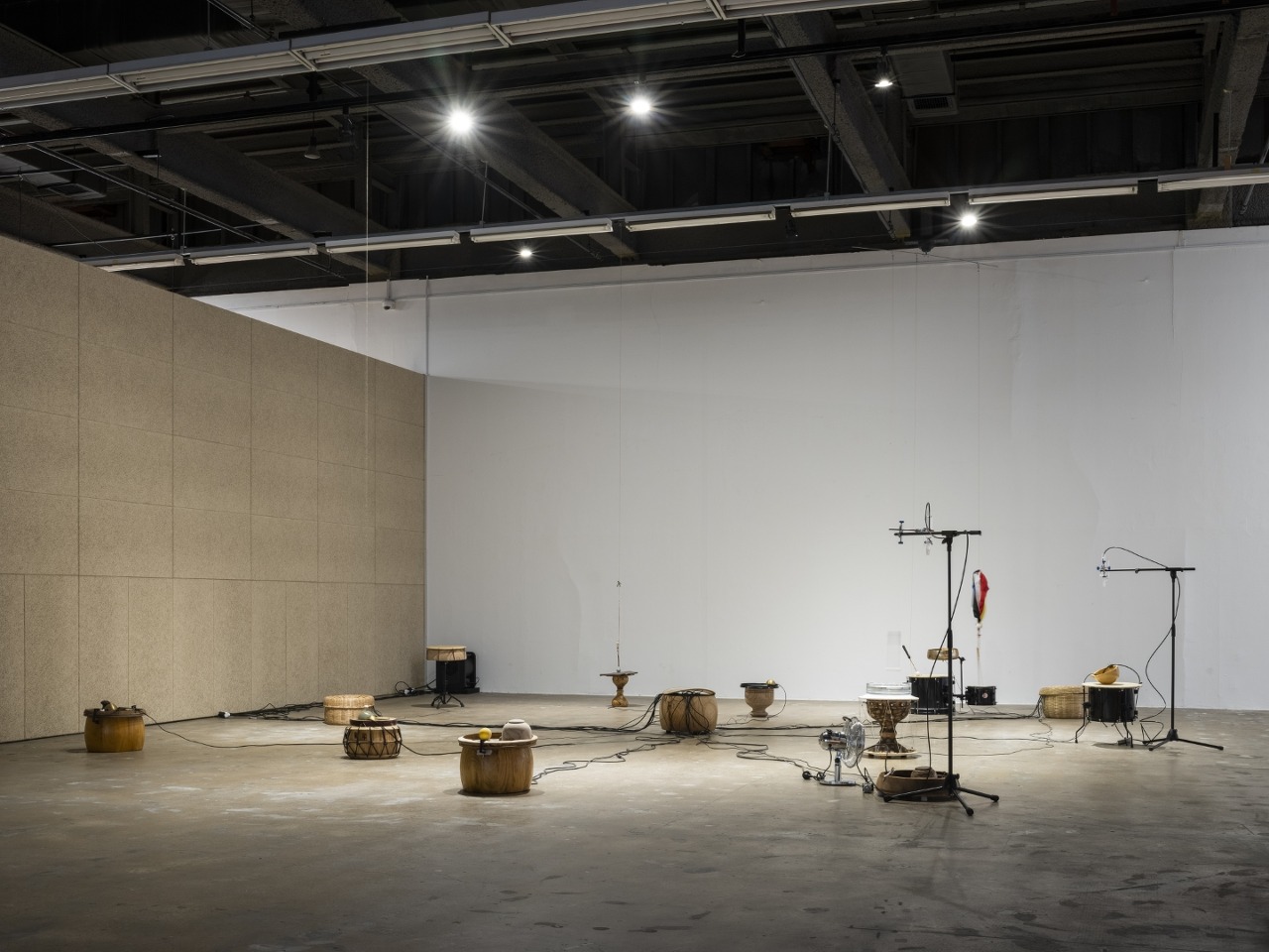 타렉 아투이(Tarik Atoul)의 〈엘리멘탈 세트〉(2019~2023. 도자기, 타악기, 수로 장치, 사운드, 전자 기기, 가변크기.)ⓒ글림워커스[사진 제공=광주비엔날레] 타렉 아투이(Tarik Atoul)는 2019년 광주 방문 이후 현지 악기장, 예술가, 공예가 들에게 한국 전통 타악기, 옹기, 청자, 한지를 재해석하는 협업을 제안, 진행해 오며 만든 〈엘리멘탈 세트〉(2019~2023. 도자기, 타악기, 수로 장치, 사운드, 전자 기기, 가변크기.)를 선보이는데, 이는 전시장 안에서 거의 유일한 무대이자 퍼포먼스를 체현하는 장치로서, 시계열의 순서와 시간, 시작과 끝을 알 수 없는 미지의 영역, 또는 지나간 퍼포먼스의 잔상으로 남는다. 작가의 연구는 전통의 재현이 아닌 이질적인 것들의 연결과 배합 자체를 향한다. 전통은 하나의 토대가 되고, 그것들은 작동하는 미디어가 된다. 이러한 연결은 순차적이라는 점에서, 하나하나는 거대한 연결망 안의 고유한 시간성과 전체의 연결적 시간을 수여받게 된다. 그리고 이는 전통, 협업, 국제성에 관한 올바른 하나의 이념으로 부상한다.