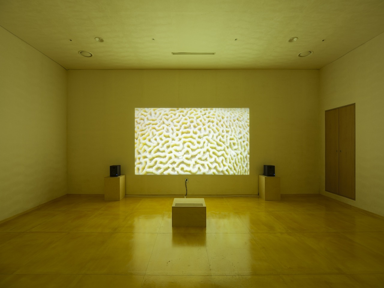 탈로이 하비니(Taloi Havini)의 〈하이에나 울림〉(2020, 단채널 영상, 컬러, 사운드, 4분 27초.)ⓒ글림워커스[사진 제공=광주비엔날레] 탈로이 하비니(Taloi Havini)의 〈하이에나 울림〉(2020, 단채널 영상, 컬러, 사운드, 4분 27초.)은 부카 섬에서 -보름달과 산호의 산란이 동시에 나타나는 것에 대해 공동체 의식을 치루는 바다의 이미지를 보여주는데, 전체 비엔날레의 주제어와 겹쳐지며, 직접적인 상징 코드로 전유된다. ‘부드럽고 여린’ 이미지 그 자체가 고스란히 어떤 언어의 형상을 나타내고 있다고도 보인다. 사실상 〈하이에나 울림〉은 어떤 것도 제시하지 않는다. 형해화되는 바다의 산호와 보름달의 잔상 이미지 정도를 보여줄 뿐 공동체의 형상도 언어도 드러내지 않는, 일종의 배경 이미지에 가까운 것이다.