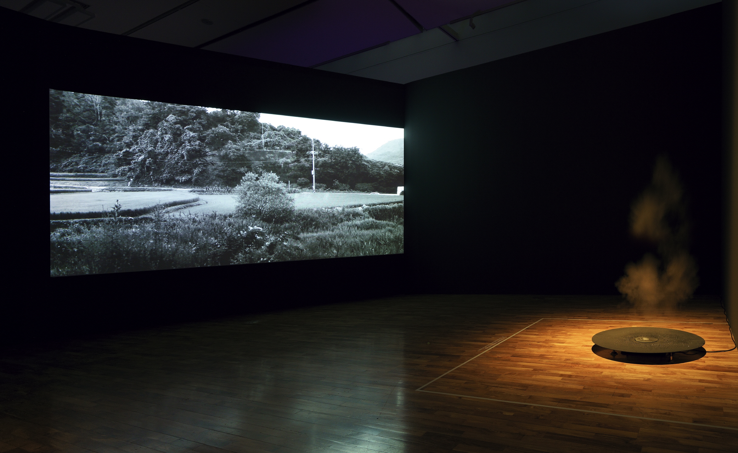 〈적막의 경관〉(2015. FHD, 2채널 오디오, 21분 8초.) 역시 같은 장소를 맴돌며 역사적 사건에 대한 추상적인 감각 자체를 현상한다. “거창사건추모공원”이 명시되고, 그곳 역사교육관에서 흘러나오는 교육 영상의 TV 아나운서의 소개가 반복된다. 그곳으로 가며 촬영한 이미지와 리와인드하는 영상이 겹치게 되는데, 이로써 이지러진 균형을 맞춘다. 역사는 한 치도 그 자리에서 이동하지 못하는 셈이다. 여기에 강물과 구름의 흐름이 보편의 토대와 그 안의 끊임없는 움직임을 보여주는데, 이렇게 역사는 찍히지 않고, 자연은, 이미지는 아무것도 나타내지 않는다. 곧 “아무것도 찍히지 않았습니다.” 거창사건추모공원은 “거창 민간인 학살 사건”을 추모하기 위해 만들어졌다―“경상남도 거창군 신원면에서 1951년 2월9일부터 11일까지 한국군에 의해 민간인이 대량학살된 사건이다. 공비를 소탕한다는 명목 하에 15세 이하 어린이 359명을 포함해 민간인 719명이 살해됐다.”(최민영, “1951년 거창 민간인 학살사건”, 경향신문, 2011.02.09. 출처= https://m.khan.co.kr/people/people-general/article/201102092111185#c2b.).