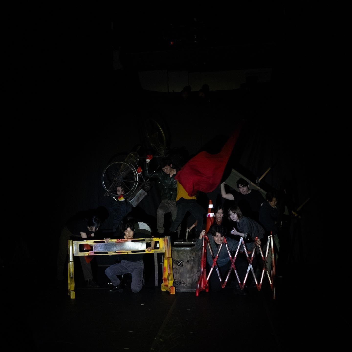 8장: 손전등과 사이렌 소리. 그리고 바리케이드. 바리케이드를 비롯하여 온갖 방호물을 갖고 전진하는, 첫 번째 드디어 모든 배우들이 등장해서, 불이 켜지자 전형적인 혁명의 깃발을 올리고 있는 집체를 구성한 장면은, 적어도 혁명의 이미지다. 다만 거기까지이다. 그러니까 〈혁명의 춤〉은 ‘혁명이라는 기표’를 말하기 위해 존재하는가. 그것만을 말하기 위해 “혁명”이라는 기의를 전개시키지 않는다면, 왜 기의를 지우는 기표로서의 제목을 내세우지 않은 것인가. “혁명의 춤”이 ‘혁명’을 온전히 지울 수 있는가. 그러니까 구조에의 꿈은 내용의 단서를 굳이 왜 드러내는 것일까.