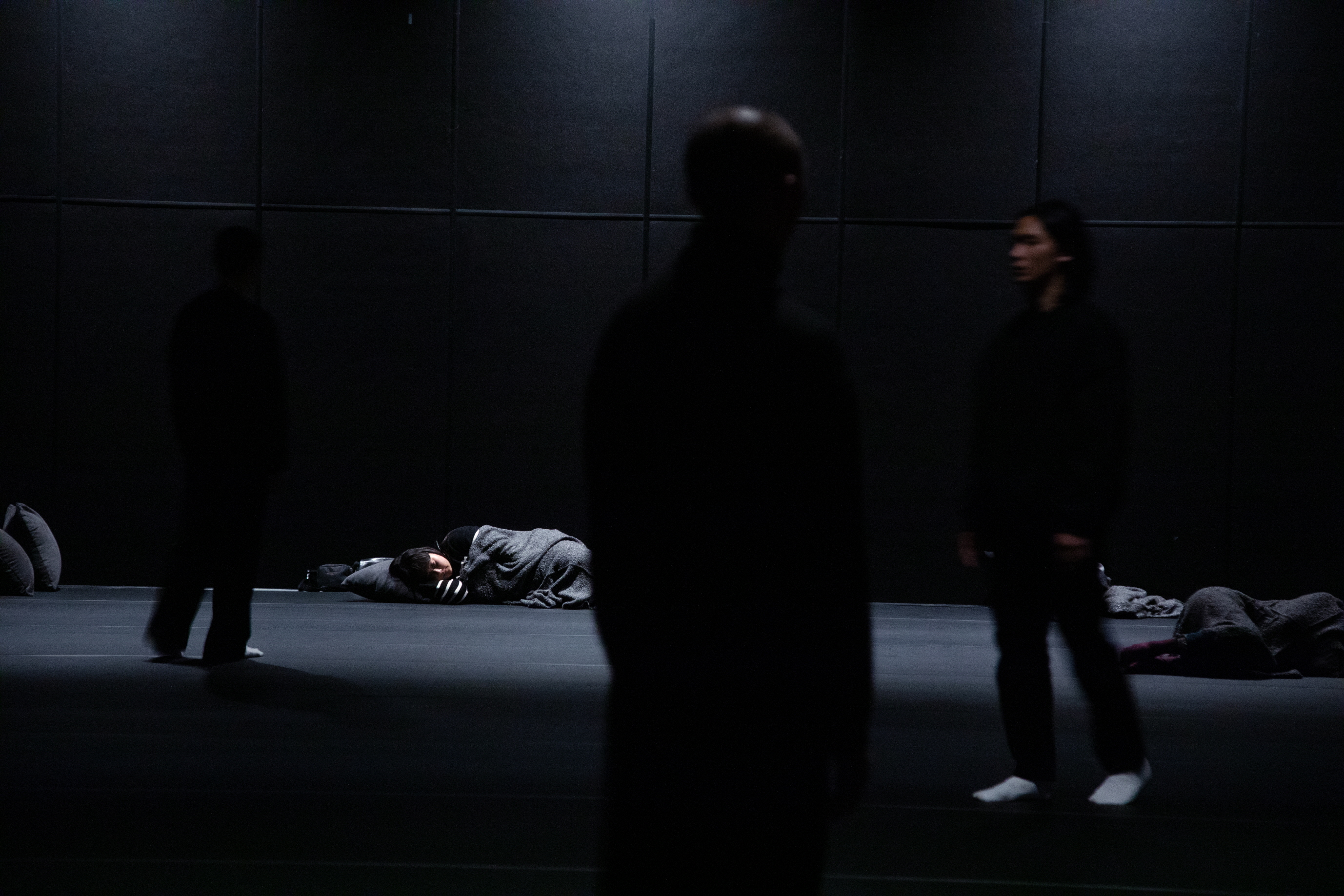 관객의 반응이 공연의 미래를 결정하므로 〈Zzz〉는 무대의 굳건한 영토를 해체할 수 있었다. 반면 은폐되는 또는 비가시화되는 퍼포머의 존재는 신비로운 것일지언정 흐릿한 타자로 남겨둘 수밖에 없었다. 퍼포머들은 잠의 교재가 되기도 하지만, 전반적으로 공간의 시‘청’각적 변형을 유도한다. 무엇보다 움직이는 체스의 말이 된다. 그에 비해 관객은 퍼포머와 퍼포머가 아닌 사람들 대부분의 영토를 확인하고 역시 자신의 영토를 확인한다. 그것은 뒤바뀔 수 있지만, 쉽사리 그렇지는 않다. 잠은 무겁게 신체를 누르고 있고, 어둠이 그것에 선행하기 때문이다. 퍼포머는 어둠에서 우월하다, 또는 유리하다.