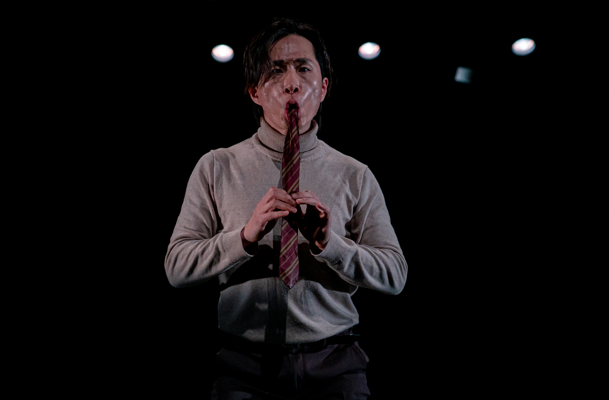 암전 이후, 금배섭은 담담하게 바닥의 휴짓조각들을 쓸어 내는데, 그것은 일종의 ‘눈’일 것이다. 이는 별다른 언어가 부가되는 것도 아니고, 맥락을 구성하는 여분의 텍스트로서 성립되는 것 역시 아님에도, 실재적인 기호로 다가온다. 물론 이 장면을 완성하는 건 빗질을 하는 제스처이지만, 하나의 장면이 독립적인 기호로 작용하는 건 그 행위가 오로지 대상만을 순수하게 향한다는 점에 기인한다. 버선이 서걱거림으로, 입 안의 고통이 기능으로서만 기능하는 눈과 하나의 얼굴 안의 전혀 다른 계열로 성립함으로 인해, 어떤 대상과의 긴밀한 관계 그 자체라는 점에서, 실은 고통과 인내의 알레고리가 아닌, 그 수북한 넥타이의 촉각으로, 또 부풀어진 입속에 포만감으로 드러나는 것과 같이.