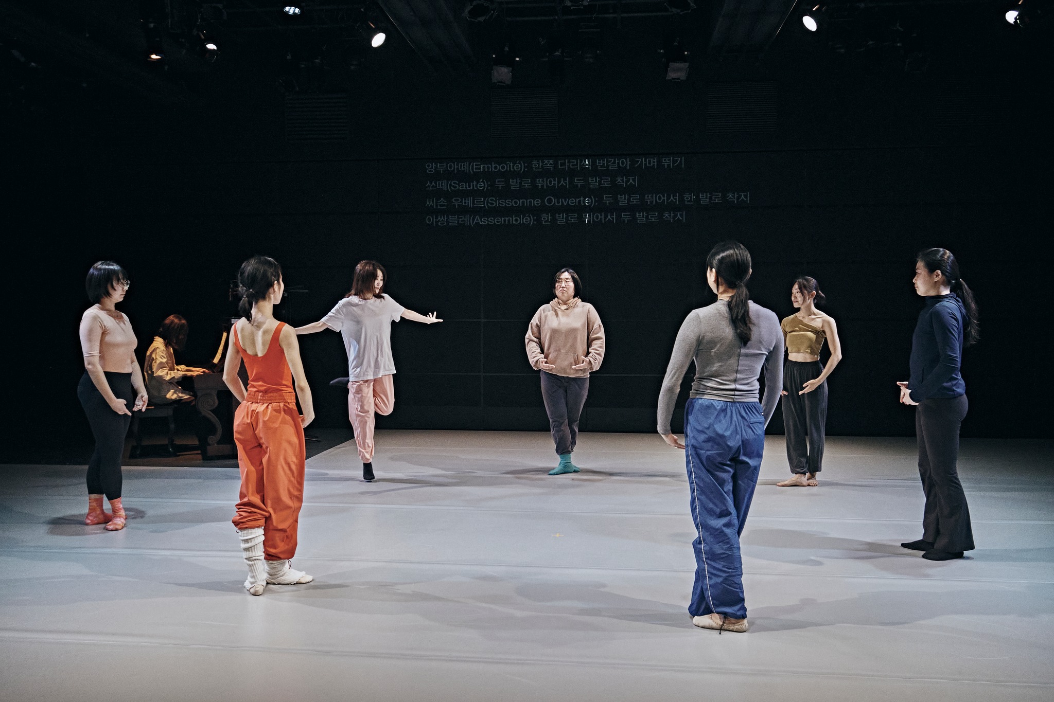 가령 이 ‘모두’는 발레를 하기 위한 적합한 몸, 발레의 특정 자세와 몸짓의 정교함을 이탈하거나 위반한다. 그렇게 강박적이기도 하고 동시에 율법이기도 한 발레의 몸과 동작은, ‘원래부터’ 발레를 하지 않았던 존재에 의해 전유됨으로써 발레의 틀을 깨뜨린다. 안무의 전략은 이 ‘모든’ 것을 수용함에 있다. 더 다양하고 다른 몸들이 요청된다. 이미 발레를 잘하는 이라면 변별력이 떨어질 것이다. 발레를 전공한 안무가가 발레를 ‘잘’ 보여주기 위한 발레가 아니라 발레와의 차이를 보여주기 위해 발레를 한다는 것. ‘메타’는 발레 너머의 존재를 호출하는 것에서 시작할 뿐만 아니라, 발레에 대한 통념의 지식을 망각(unlearning)하는 안무가의 자의식에서 출발한다.