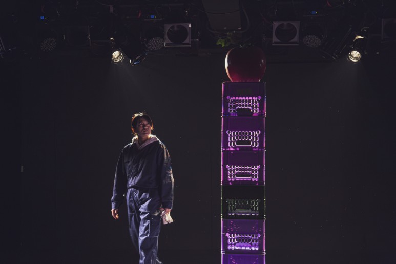 통상 우유 상자로 사용되는 플라스틱 박스를 바닥에 여러 방향으로 돌려 가며 쳐대는 행위는 물류 프로세스의 부품이 되는 인간의 신체에 대한 타격감으로 연장된다. 지루하고도 격렬한 반복이 지속된다. 세 배우는 대칭적으로 존재한다. 이는 서로의 움직임을 상쇄하면서 동시에 각자의 존재를 그 자체로 강조할 수 있다. 물리적인 압력과 물리적인 현존은 그렇게 등치한다.