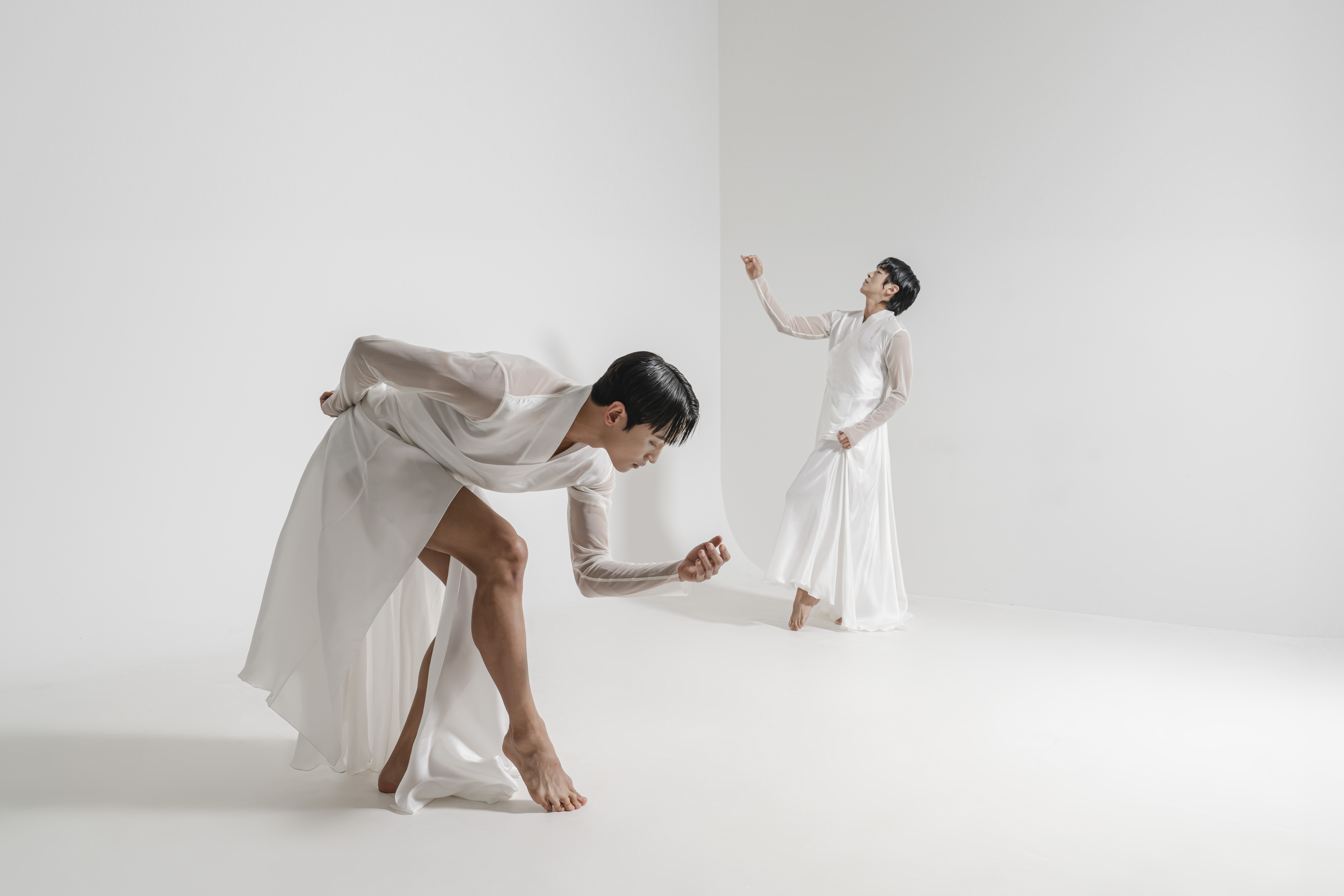 국립무용단, 〈사자의 서〉 콘셉트 사진[사진 제공=국립극장]. 국립무용단의 〈사자의 서〉는 죽음 너머의 세계를 그린다. 이는 신화적인 차원에서의 접근, 곧 재현의 한 범주에 속한다. 곧 죽음 너머의 현실이 존재한다는 전제가 서사의 한 종류를 이루며, 인간의 감정이 잔여하고 지속된다는 관점이 그 뒤를 따른다. 총 3개의 장으로 구성되는 가운데, 현실과의 단절을 인지하고 있음의 1장과 3장, 과거를 현재로 호출해 오는 2장으로 구분된다. 슬픔과 회한의 감정들이 혼재되는 세계는 전반적으로 의례의 정동을 구성하는 가운데, 2장에서는 현실에서 미끄러질 수밖에 없는 주체의 감정적 드라마로 변환된다. 망자를 인도하는 저승사자의 등장과 망자를 애도하는 수많은 사람은 현실과 죽음 너머의 현실을 접합하며 두 세계를 분리하면서 과거의 현실과 새로운 세계를 동시에 구성한다. 또는 전자를 후자로 인계한다.