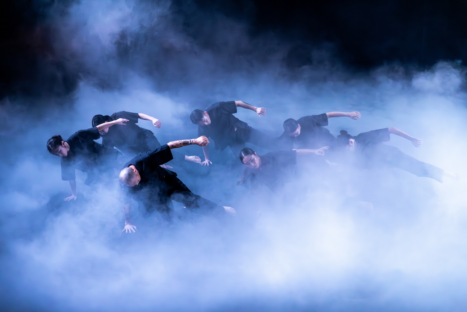 움직임은 포착 가능하며, 일정한 분기 아래 구분 가능하다. 그리고 일종의 의식적 절차로서 이 행위들을 바라볼 수 있다. 그것은 공통 감각을 공유하고 일정한 하나의 세계관을 기저에 둔 공동체의 집단적 양식의 차원에서 접근할 수 있다. 무대 바닥을 향한, 그리고 서로의 서로에 대한 접지된 감각의 일환은 하나의 특정한 장소, 치우친 영역에 근거하므로 조명의 직접적 환기 작용에 따르는 구조적 변경에 의한 장소의 이전은 그 차이가 극대화된다. 그 가운데 우리는 이들의 실재의 몸에 근접하게 되는데, 이는 조명이 가해지지 않은, 맨몸의 향연이 객석과 가장 축소된 거리를 확보할 때다.
