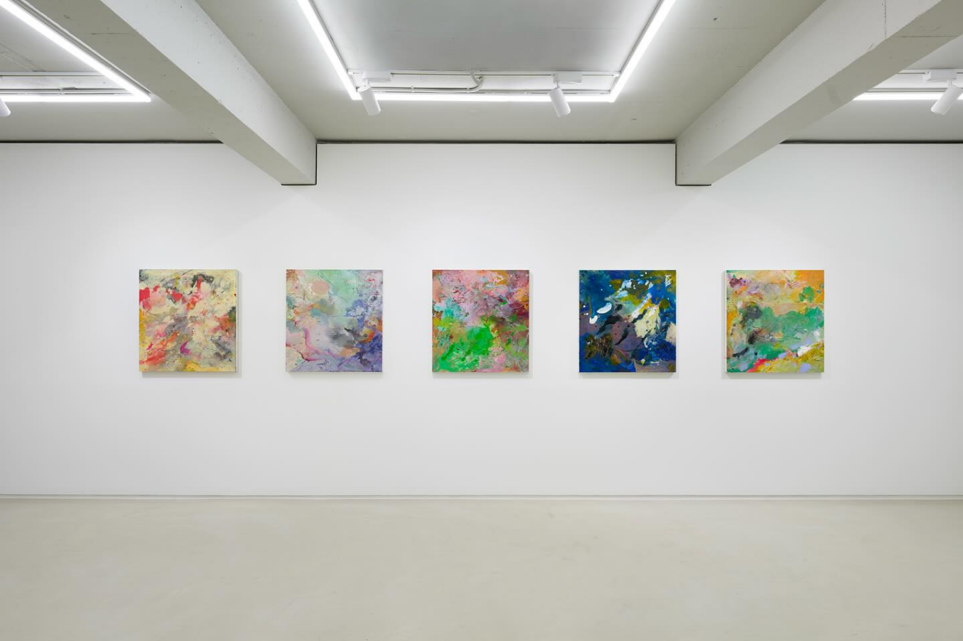 어쩌면 이는 색에서도, 형상에서도 근본적으로 결정되지 않는, 녹색도 잎도 아닌, 그런 것을 그리고자 하는, 회화라고 부르는 작가의 의도를 드러내고 있는 건 아닐까. 그것이 작은 회화들, 〈녹색은 잎으로〉에서 보면, 왼쪽 하단에서 중심을 향해 오르는 어떤 방향성을 선과 색채 덩어리로 인해 분별할 수 있는 듯하다, 1, 3, 4의 경우. 또는 오른쪽 중앙부에서 왼쪽 상단부로 올라가는 기울어진 사선의 그 아래로의 순차적인 반복을 통해 더 큰 덩어리의 형상을 확인할 수 있을 것만 같다, 2, 5의 경우. 그렇지만 이는 미미하며, 더 큰 회화로 옮겨올 때 명확함은 오히려 덜해진다. 앞서 말했듯, 방향과 형상의 분별, 또 물감의 자율적인 지표성, 형상과 배경, 선과 색 사이의 위계와 구별 역시 무의미해진다. 그러니까 이 회화를 근본적으로 어떻게 봐야 하는가. 바라볼 수 있는 것인가.