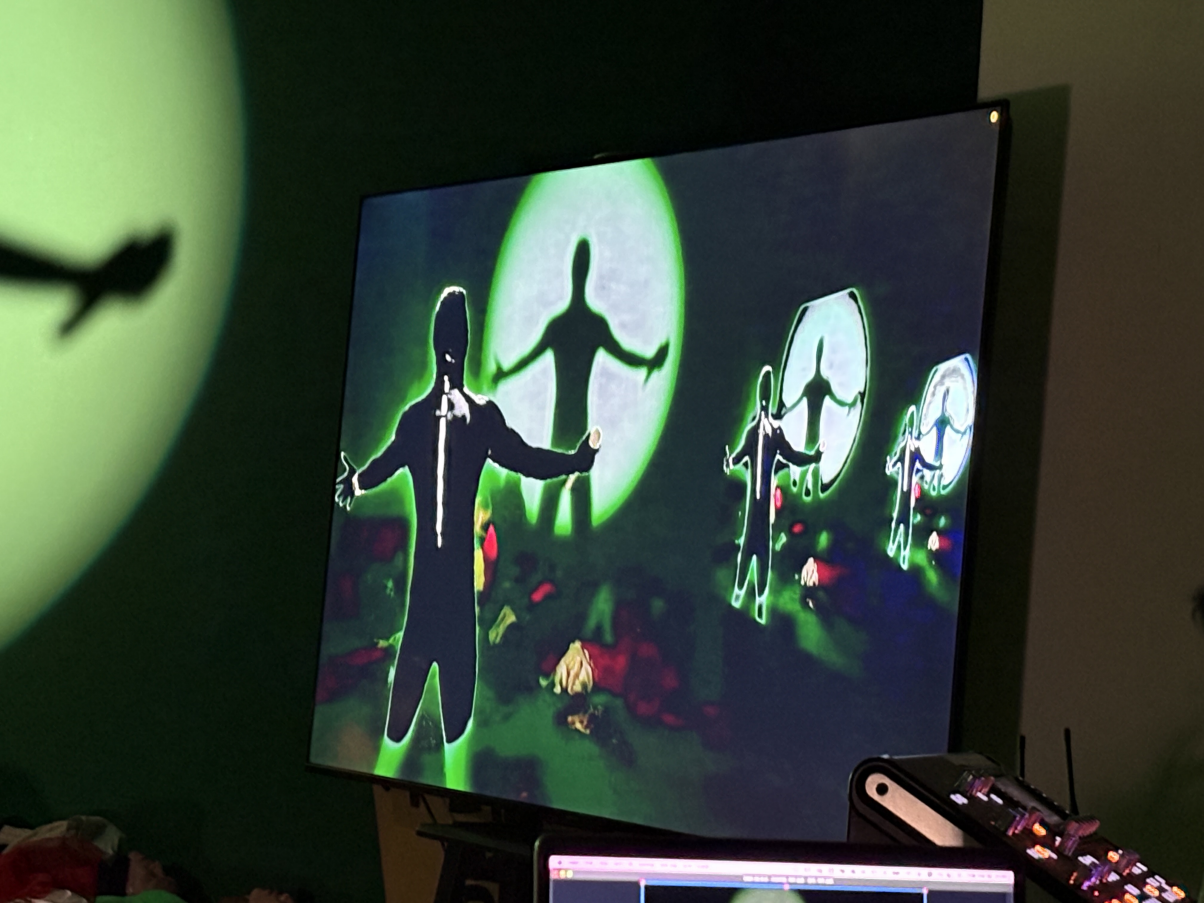 이 둘이 하나로 묶이는 지점이 곧 〈그린 폴터가이스트〉의 변용에 대한 열망과 모방, 재현과 그 한계의 차원이 거울 쌍을 이루고 있음을 보여준다. 분명함과 불완전함은 각각 유연함과 불확실성의 차원과 맞물리며 초록 무대에서 바뀌는 건 실은 없다. 크로마키 의상에 누끼만큼 깎여 나가지만, 그 대비로부터 드러나는 건 실재의 깎여 나가지 않은 초라함이다. 따라서 〈그린 폴터가이스트〉가 이미지의 실제적 힘에 기초해 무언가를 새로 쓰는 건 없다. 곧 변용의 전 단계로서 그 미완성의 세계가 실재의 흔적임을 보여주는 지점에 〈그린 폴터가이스트〉가 머문다.