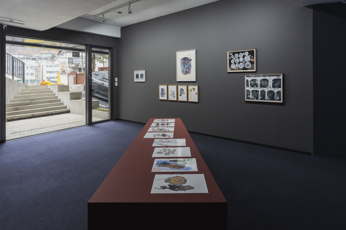 이 전시의 주요한 지점을 차지‘할’ 것인, 일상의 평범함을 조금 특이한 것으로 비범한 것으로 포착해 낸 이 밋밋한 영상보다는 역설적으로 사고와 내면의 구조화로서 취해진 다양성의 조각들인 드로잉이 조금 더 세계에 대한, 세계를 보는 관점의 입체성과 독특함을 드러낸다고 보이는 것 역시, 이 전시가 소위 완성을 향한 전 단계 같은 감각, 실은 의도적으로 특정 서사의 매듭점을 유예하며 일반적으로 네가 생각하는 결말 따위는 없다는 감각에 의하면, 역설적으로 그 전의 시간, 또는 무언가를 먼저 안고 있는 시간으로서 드로잉은 영상에 대한 우위를 확보하는 것으로 보이는 것이다.
