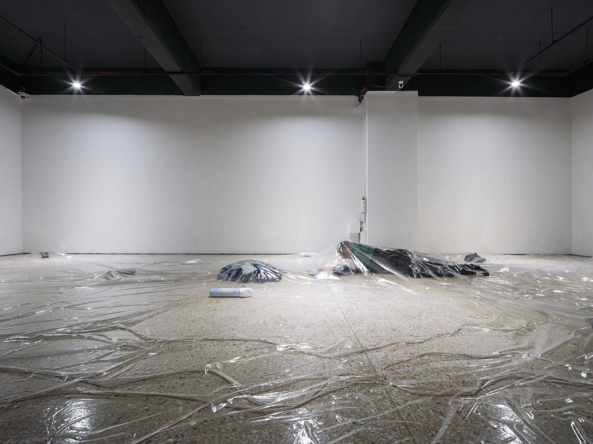 이민재, 《Doppel-Lumpen》(기획: 하상현)ⓒ홍철기[사진 제공=작가](이하 상동). 《Doppel-Lumpen》은 작가의 수많은 복제된 형상을 마주하게 하는데, 이는 세 가지 퍼포먼스를 순차적으로 약간의 간격을 두고 반복해서 전시 내내 지속하는 체계 아래, 그 퍼포먼스 시스템이 작가 단독의 형상을 가시화하기보다는 그것이 끊임없이 지연되고 부인되면서 재가시화되는 국면 아래 있음을 의미한다. 곧 작가의 수행은 매체로서 사물-공간의 경유를 통해 그 행위의 명확함 대신에 그 매체에의 작가의 체현됨의 양상으로 구조화되는데, 따라서 작가는 매체를 투영하는 신체, 그것이 연장되는 신체적 부산물로 재결정되어진다.