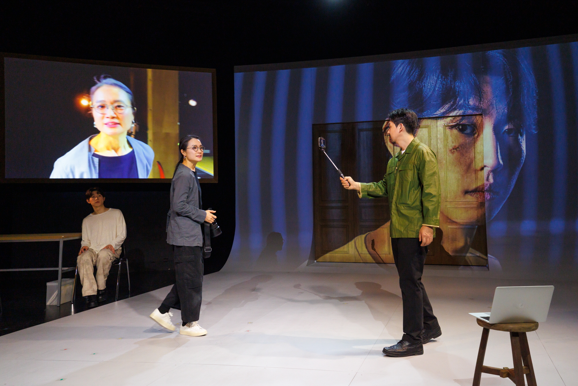 창작집단 세 사람, 〈멸종위기종〉©유경오[사진 제공=창작산실](이하 상동). 〈멸종위기종〉은 멸종위기종을 다루는 두 가지 인간의 기술을 겹쳐 놓는 것으로 시작하는데, 이는 그것에 대한 각기 다른 인간의 시선과 태도를 보여준다. 그것을 보호하고 지키는 동물원 사육사 윤정연과 그것을 찍어 인류에게 그것의 숭고함을 메시지로 전파하고자 하는 다큐멘터리 사진작가 반우, 그리고 그것을 전유하는 그의 제자 정은호가 그것이다. 동물과 인간 사이에 하이픈을 구성하는, 동물과 소통하는 역량의 전자는 후자의 대중 추수주의적 열망 아래, 동물을 가치의 기호로 정제하는 그 작업의 매개자로서 편입되는데, 이제 그 기호의 발신에 따라 생겨난 세상과 후자의 피드백 고리로부터 모든 상황이 급변하게 된다