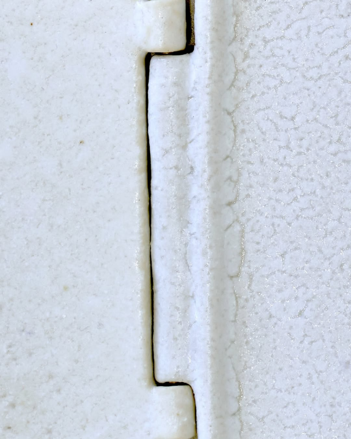 사실 그것은 지지체에 대한 실험에 가까운데, 결과적으로 그것이 연장된 하나의 사물, 하나의 조각 작업으로 보지 않는 이는 드물 것이다. 이때 대등하거나 역전된 차원에서 지지체는 부상하는데, 그에 대한 언어의 ‘봉쇄’는 다시 질료로서 매체의 특이성에 대해 재고하게 한다. 이는 이어지는 ‘경첩’ 작업들이 지지체이자 매체이며, 도자로서 나타났다는 것― 도자 안의 도자이거나 도자와 도자의 만남―과 구분할 수 있다(하나의 예외는 〈#6〉인데, 도자를 덮은 천은 부피에 거의 영향을 주지 않는다.)