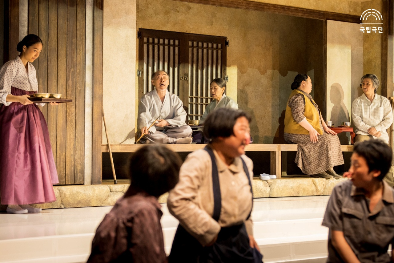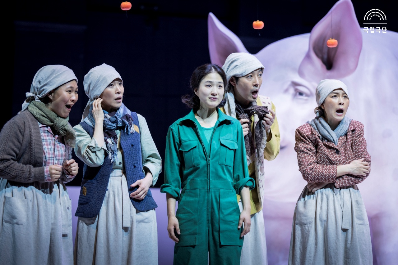 차범석 작/윤한솔 연출, 〈활화산〉[사진 제공=국립극단](이하 상동). 〈활화산〉은 1970년대 새마을운동을 선전하기 위한 목적을 지닌 연극으로서 이는 예술이 현실 정치를 위한 수단으로 복무하려는 예외적 경로로부터의 산출이다. 그것의 부정성에 대한 물음 이전에 그것이 가능한가의 물음이 선행될 필요가 있는데, 한편으로는 예술의 자율성을 완전히 포기하는 것이, 다른 한편으로는 예술의 다의성 혹은 불가해성을 완전히 차단하는 것이 가능한가라는 물음이다. 그것이 한편으로는 프로파간다 연극이면서 다른 한편으로는 일상을 반영하는 리얼리즘 극이라면, 후자는 전자의 목적을 위한 차원에서 온전히 조작될 수 있을까. 여기서 재현은 하나의 시대와 또 다른 하나의 시대를 보여주며, 그 둘의 뚜렷한 간극을 갖는다.